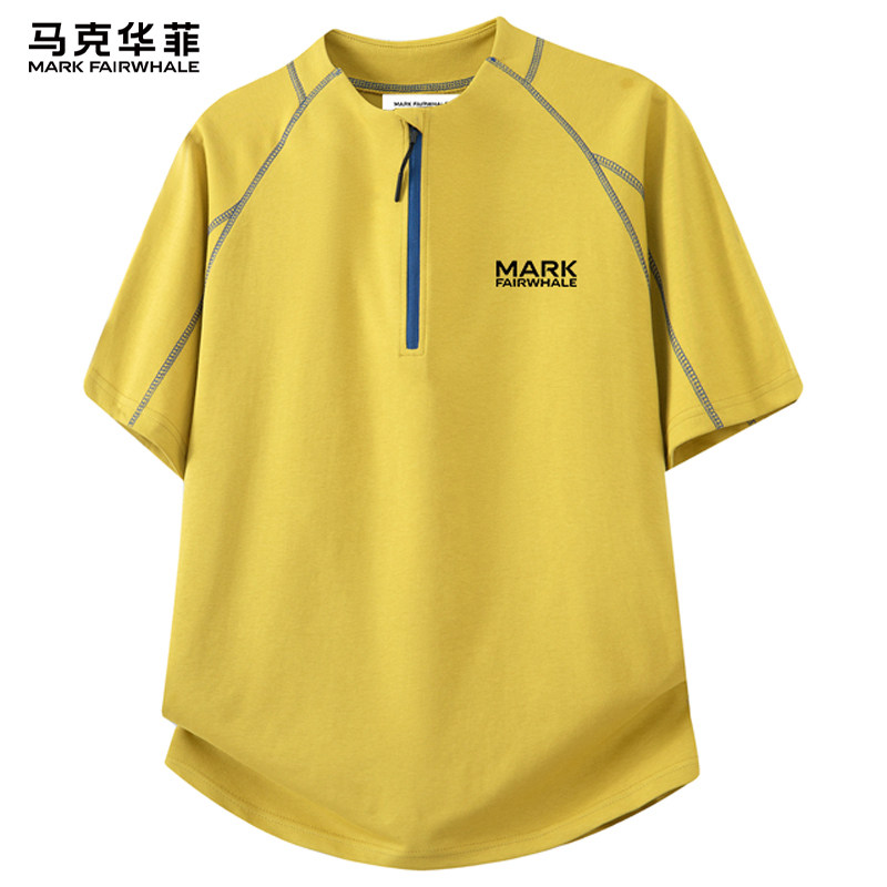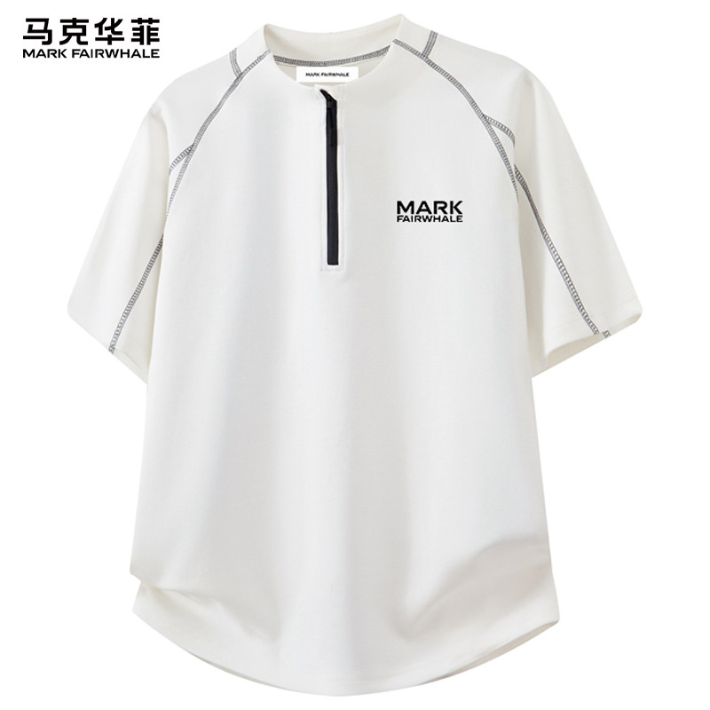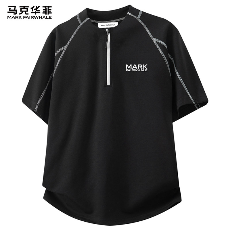 马克华菲2026新款半拉链男生短袖T恤男款夏季宽松休闲潮牌上衣服