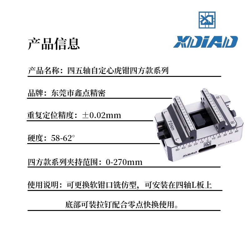 淘宝鑫点四轴五轴自定心虎钳四方款系列硬度58-62可搭配零点快换使用