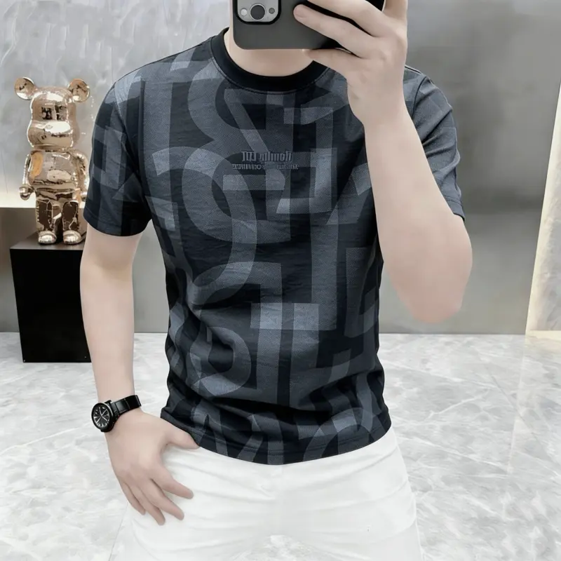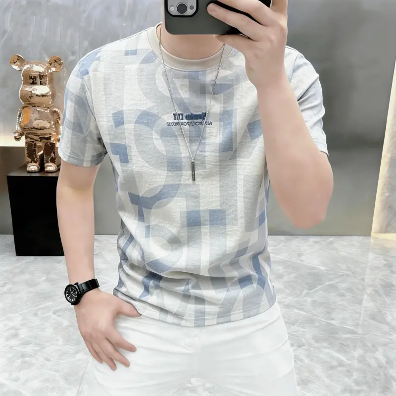 淘宝卡尔精品高档夏季圆领薄款印花短袖T恤男士时尚休闲半袖体恤男装