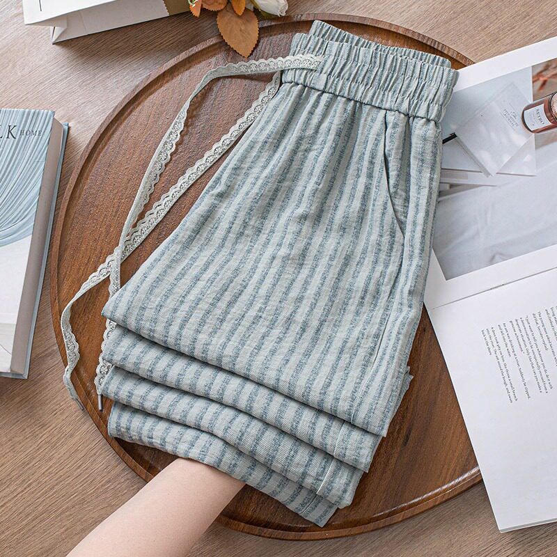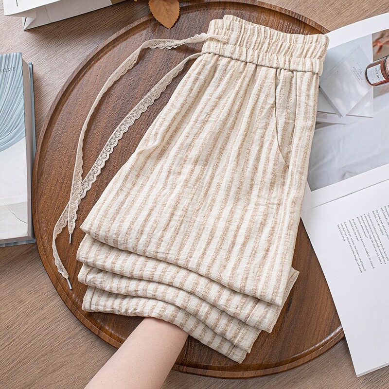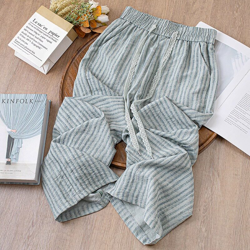 --------------------- 啄木鸟条纹亚麻垂感阔腿九分裤女2025夏季薄款宽松显瘦直筒长裤女 【原售价】99元 【现售价】99元 【推荐理由】