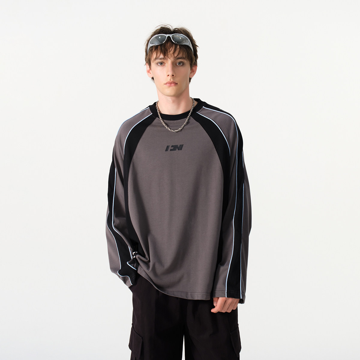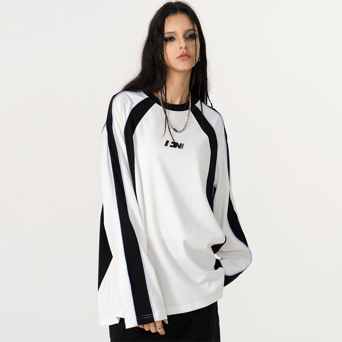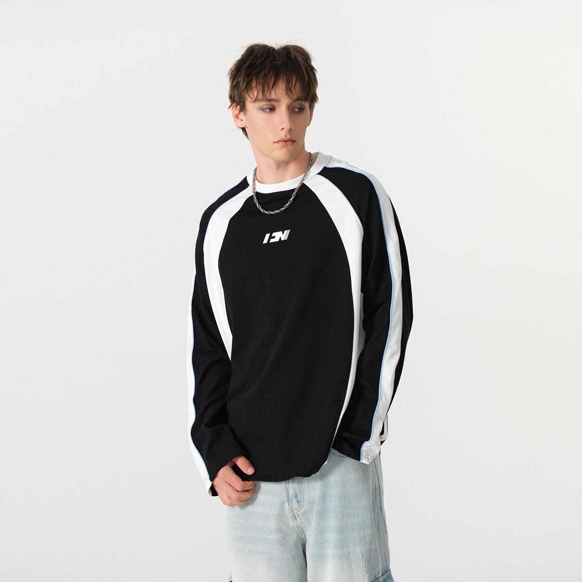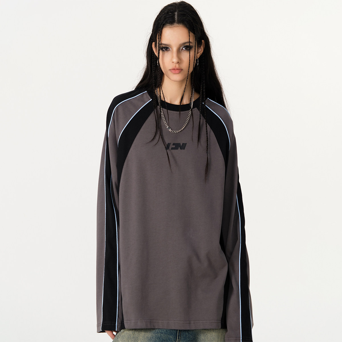 田嘉瑞同款FORNINES国潮重磅长袖T恤男女美式复古拼色春季打底衫