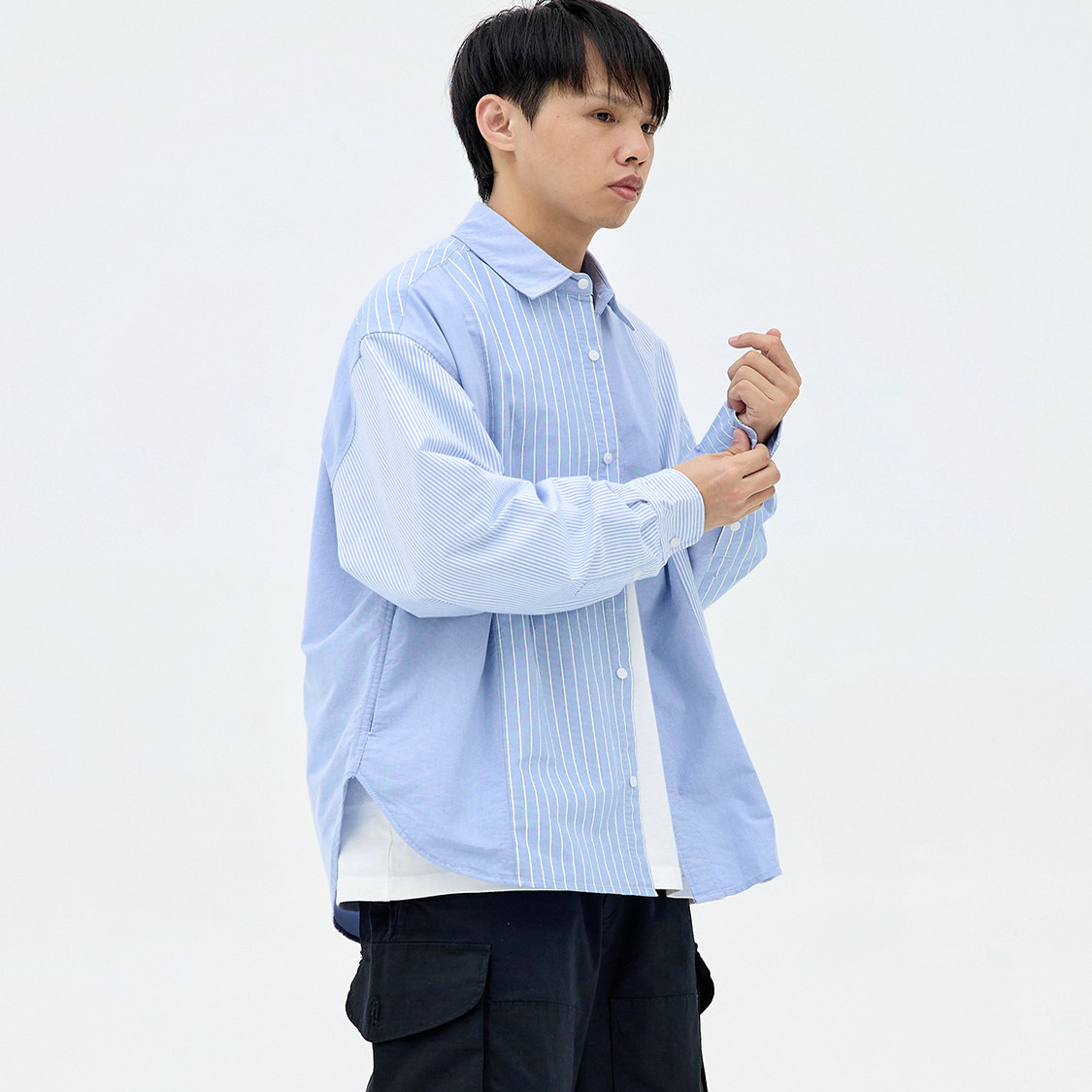 LAPIVIMA 24AW OXFORD PATCHWORK BIG SHIRT撞色拼接廓形长袖衬衫