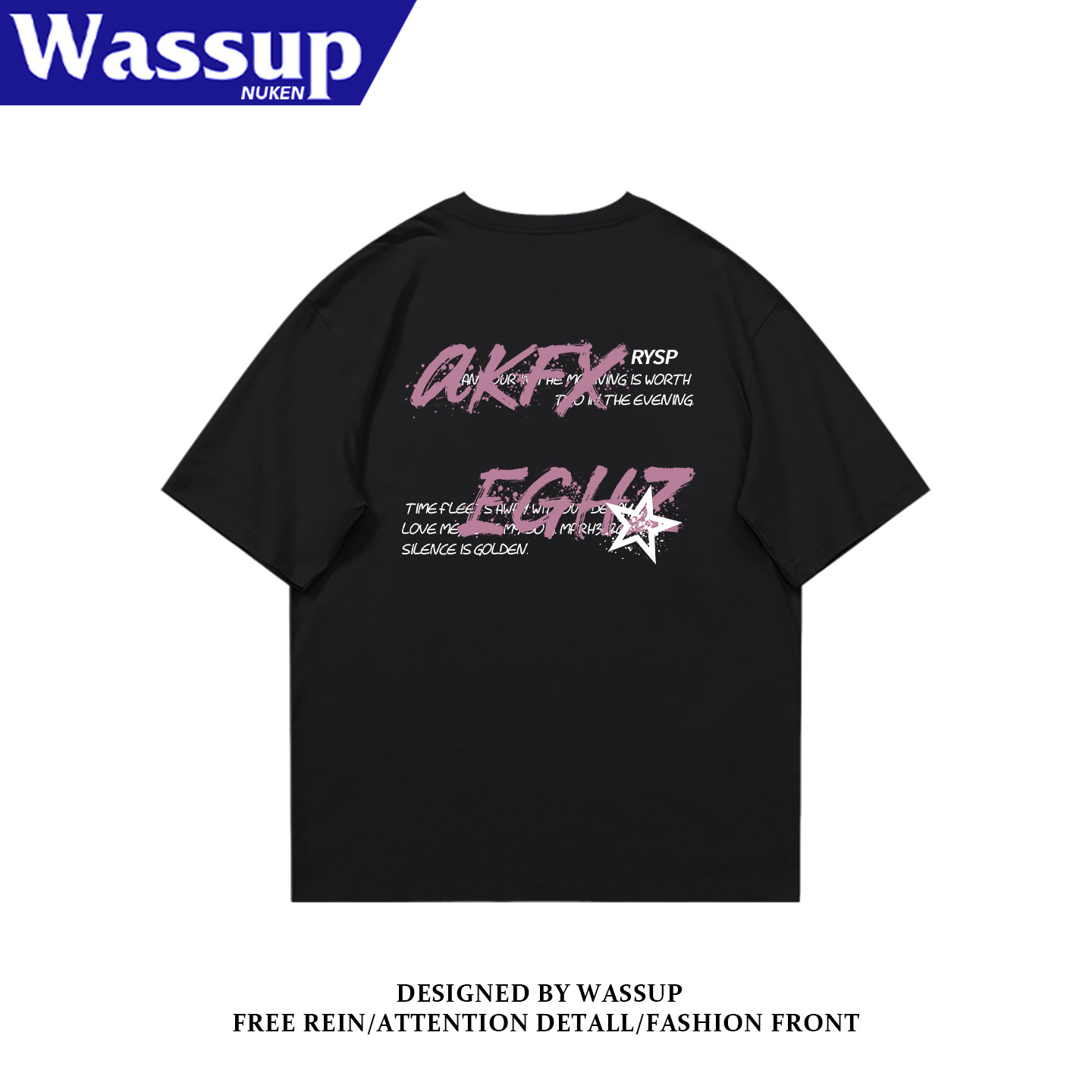 --------------------- WASSUP美式街头纯棉短袖t恤男高中生印花高街痞帅青少年夏季半袖 【原售价】79.8元 【现售价】43.8元 【推荐理由】