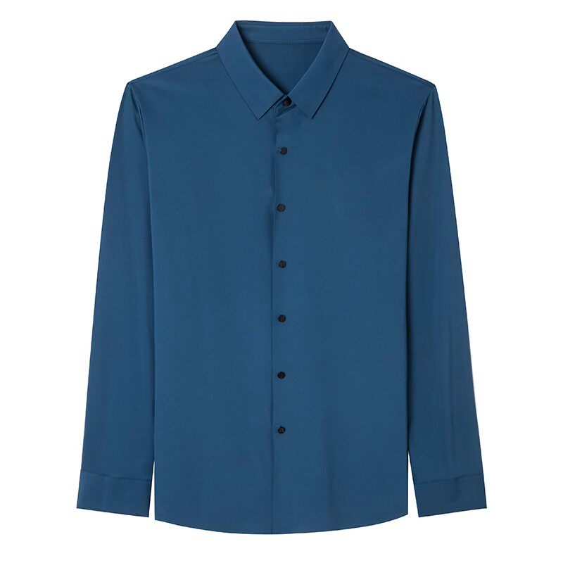 罗蒙无痕衬衫男长袖春秋季2024新款垂感商务休闲免烫中年男士衬衣