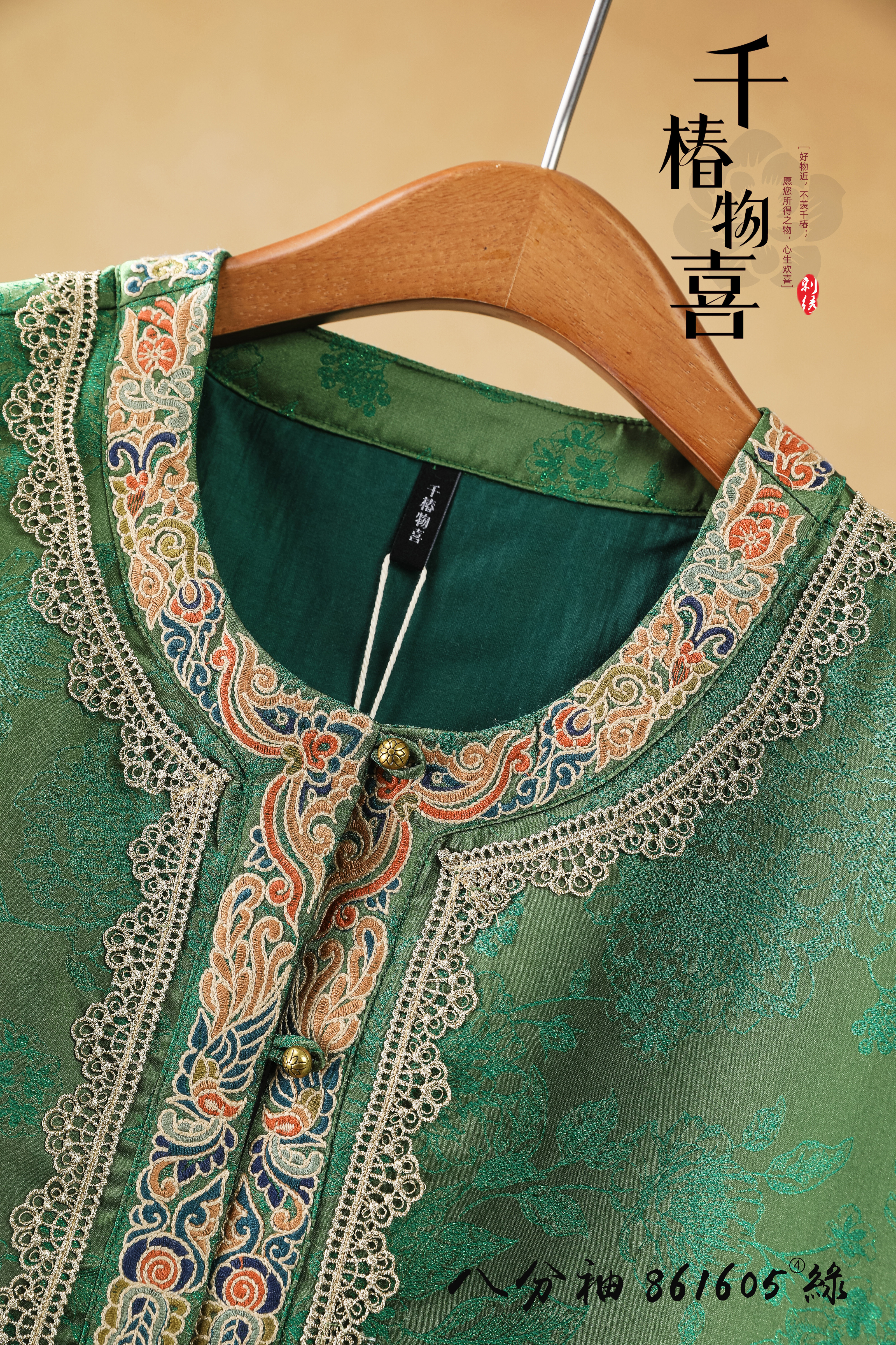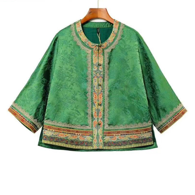 --------------------- 原创设计新中式上衣高档太太服重工复古绿色刺绣对襟国风气质外套 【原售价】776元 【现售价】689元 【推荐理由】