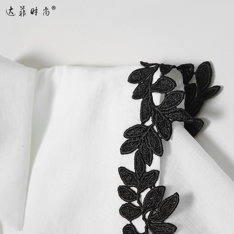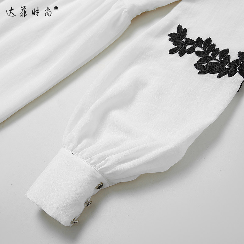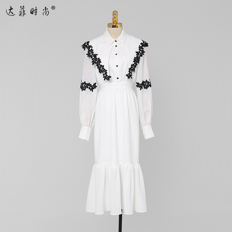 淘宝2026春季新款气质高级感撞色花边大翻领蓝色亮丝灯笼袖连衣裙