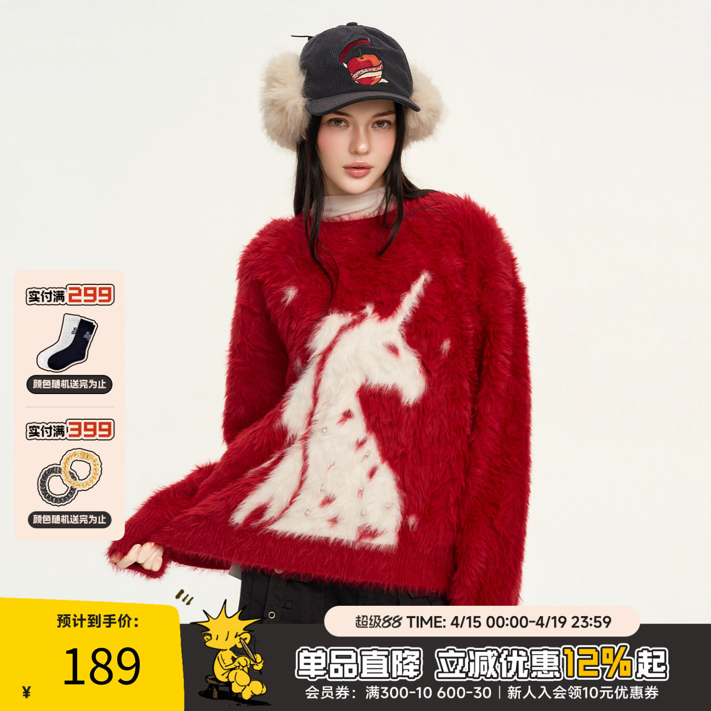 --------------------- RIC 马年独角兽仿貂毛毛衣男秋冬宽松设计感加厚针织衫潮牌上衣女 【原售价】599元 【现售价】189元 【推荐理由】