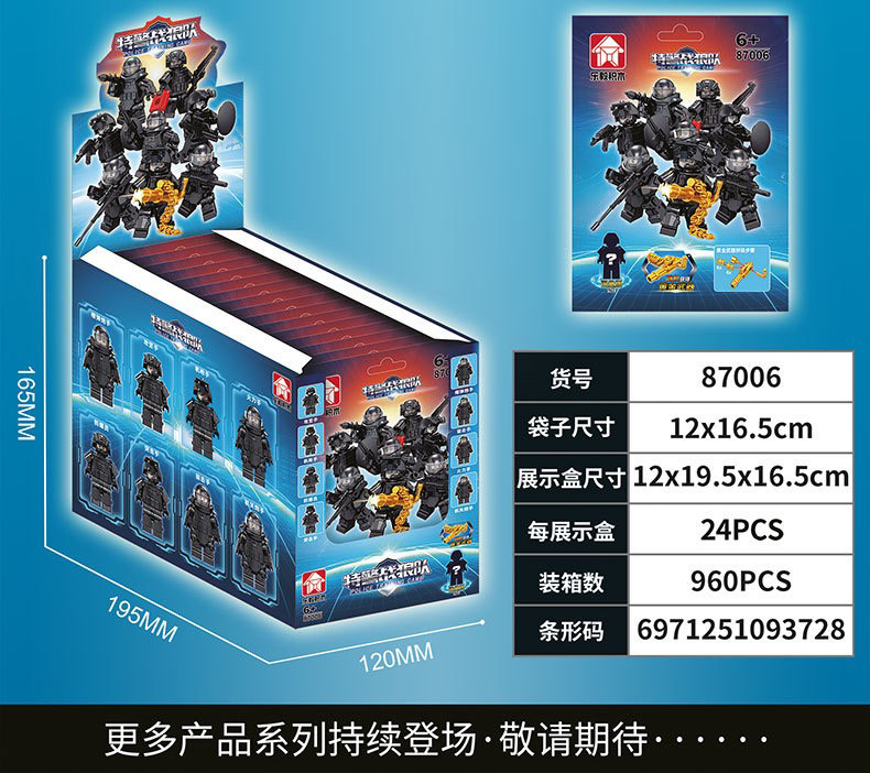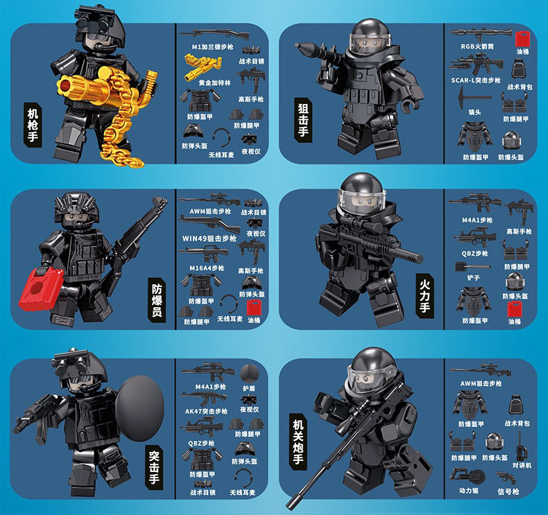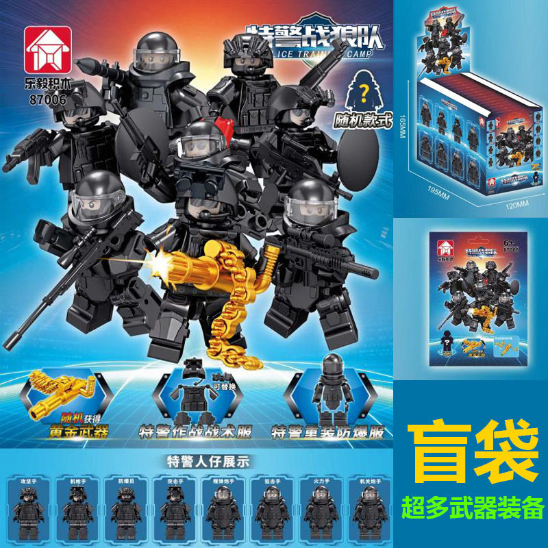 乐毅87006盲袋特警战狼队积木警察人仔拼装军事玩具盲盒类玩具