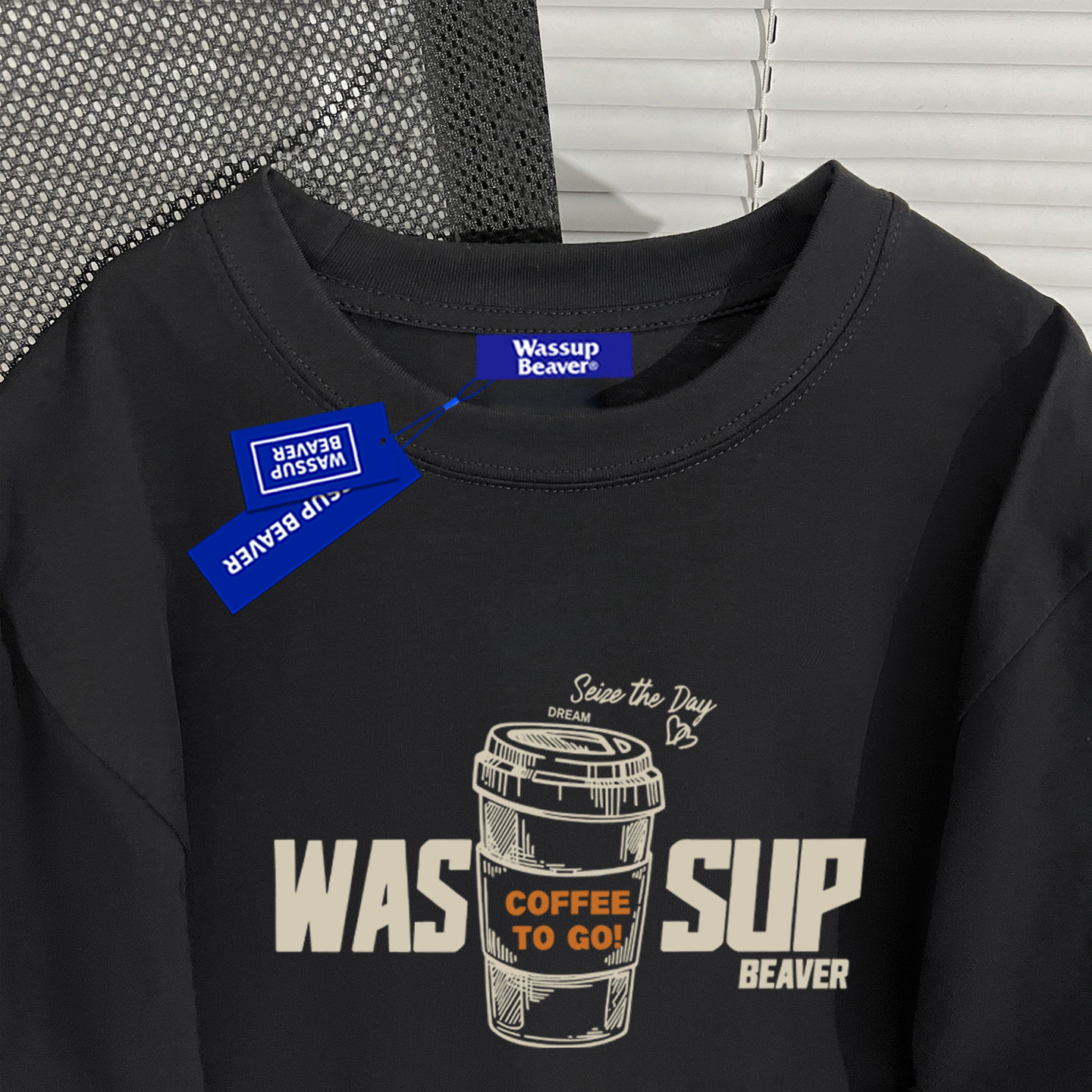 --------------------- WASSUP BEAVER美式咖啡杯印花上衣夏季男女情侣小众T恤纯棉短袖潮 【原售价】99元 【现售价】51.5元 【推荐理由】