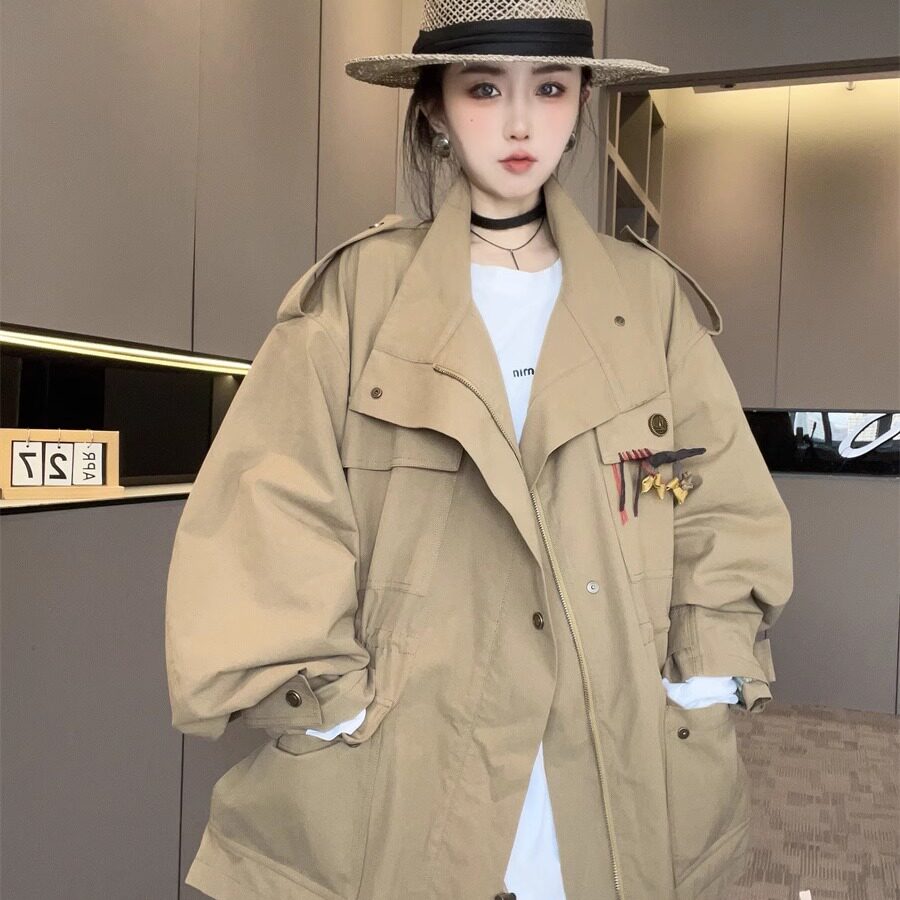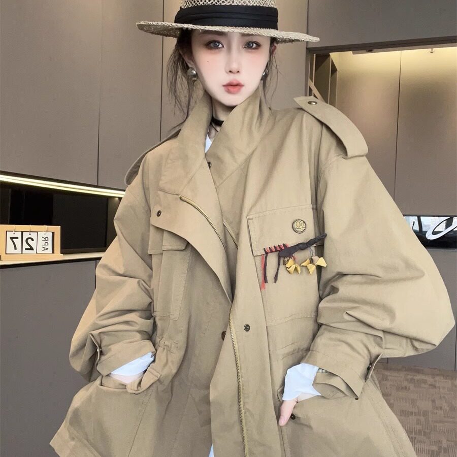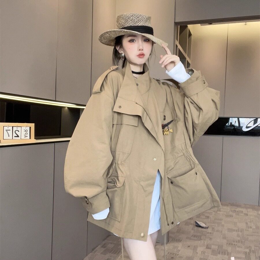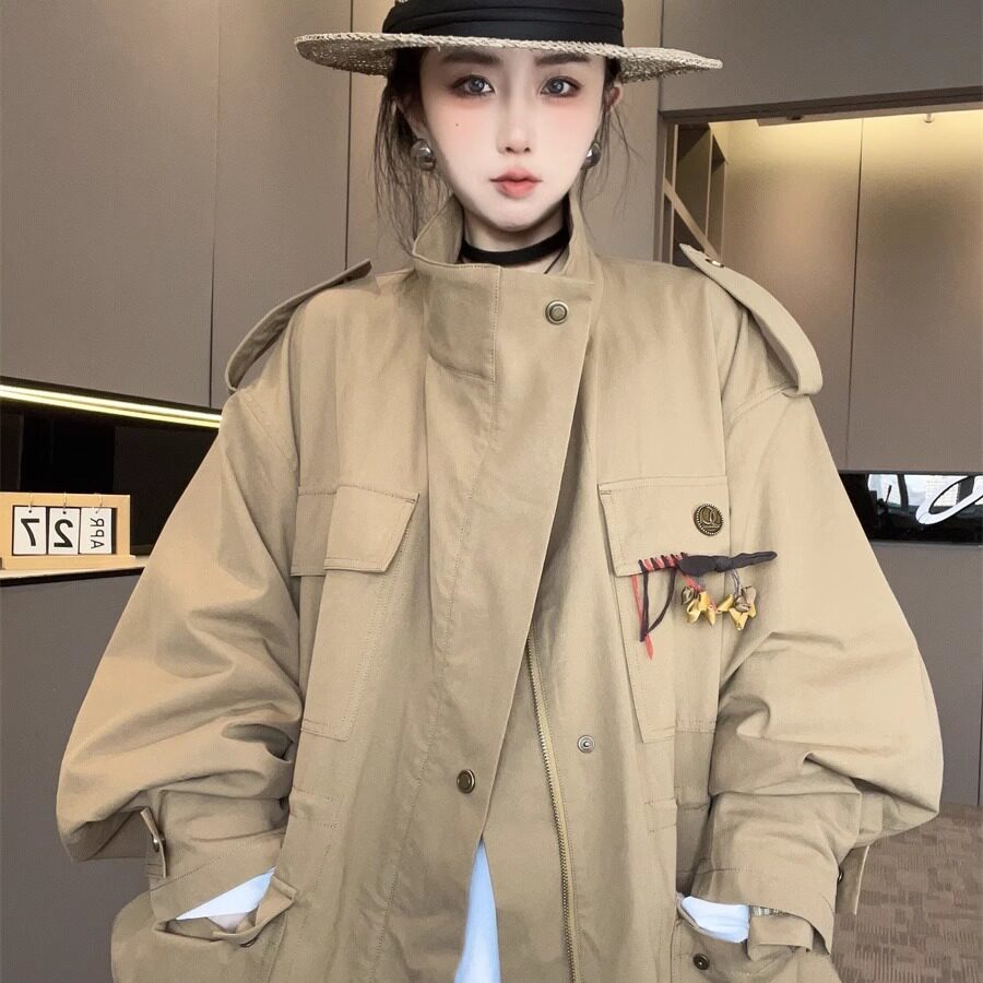 --------------------- 【现货】外套女款秋季纯色大口袋拉链立领长袖风衣2025新款上衣潮 【原售价】388元 【现售价】341元 【推荐理由】