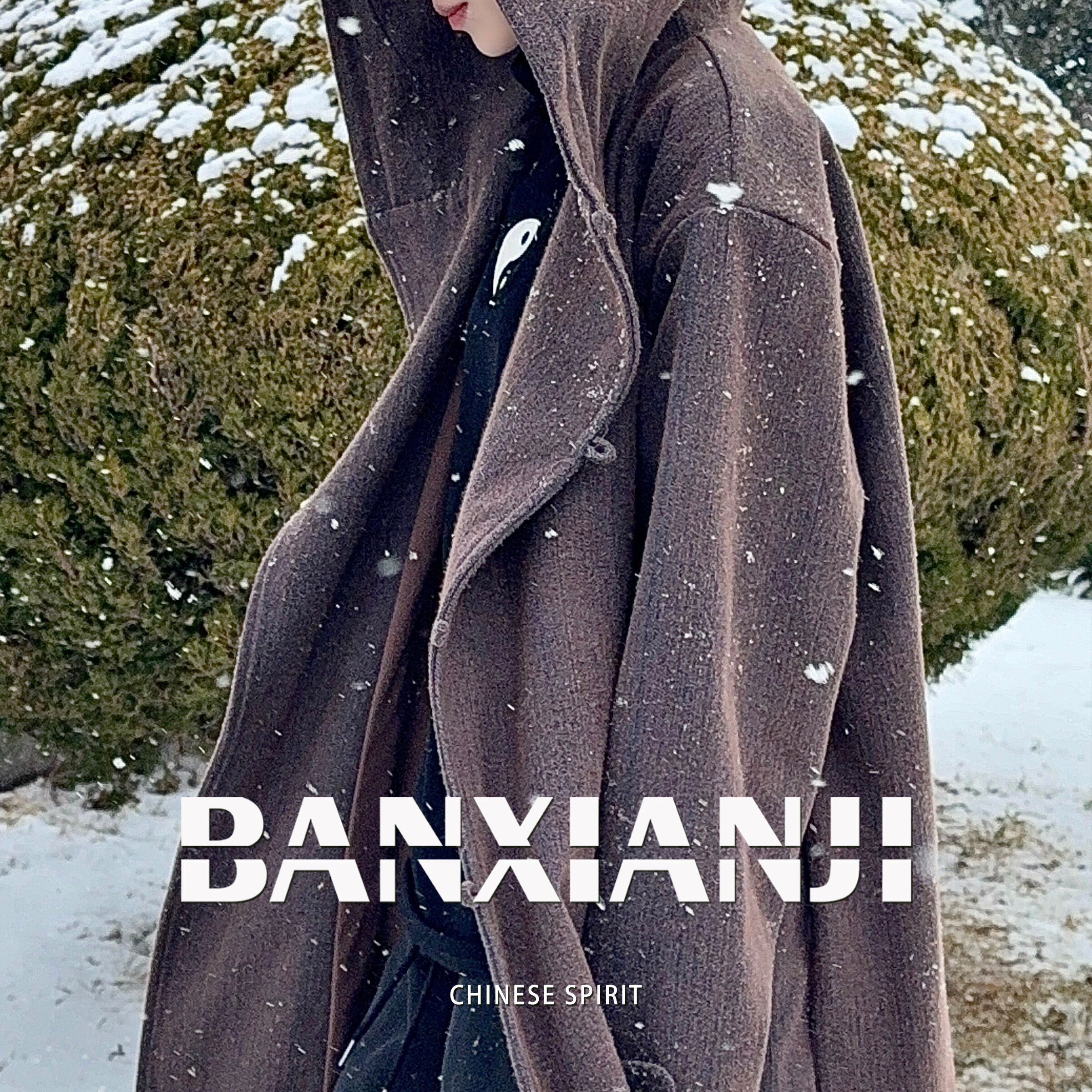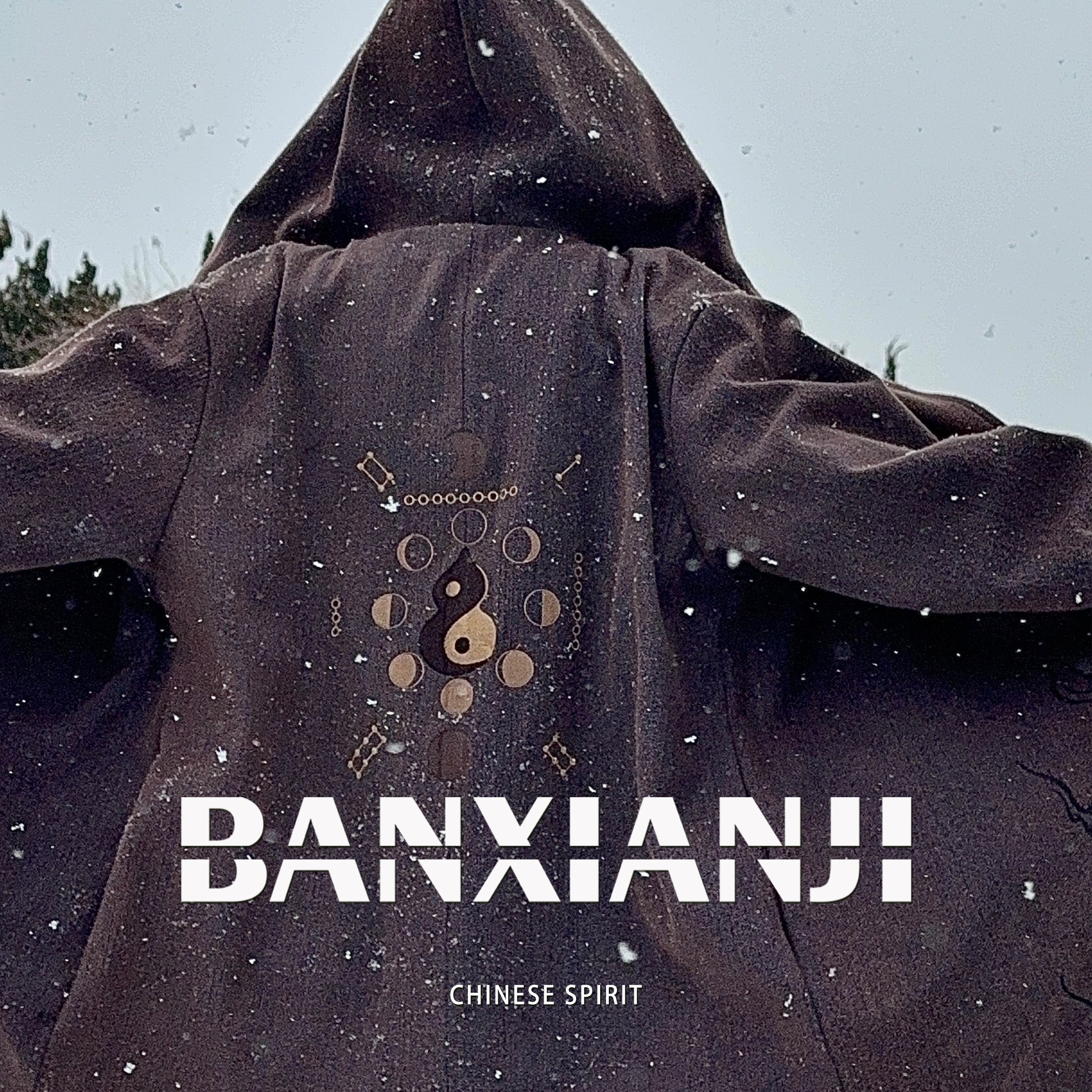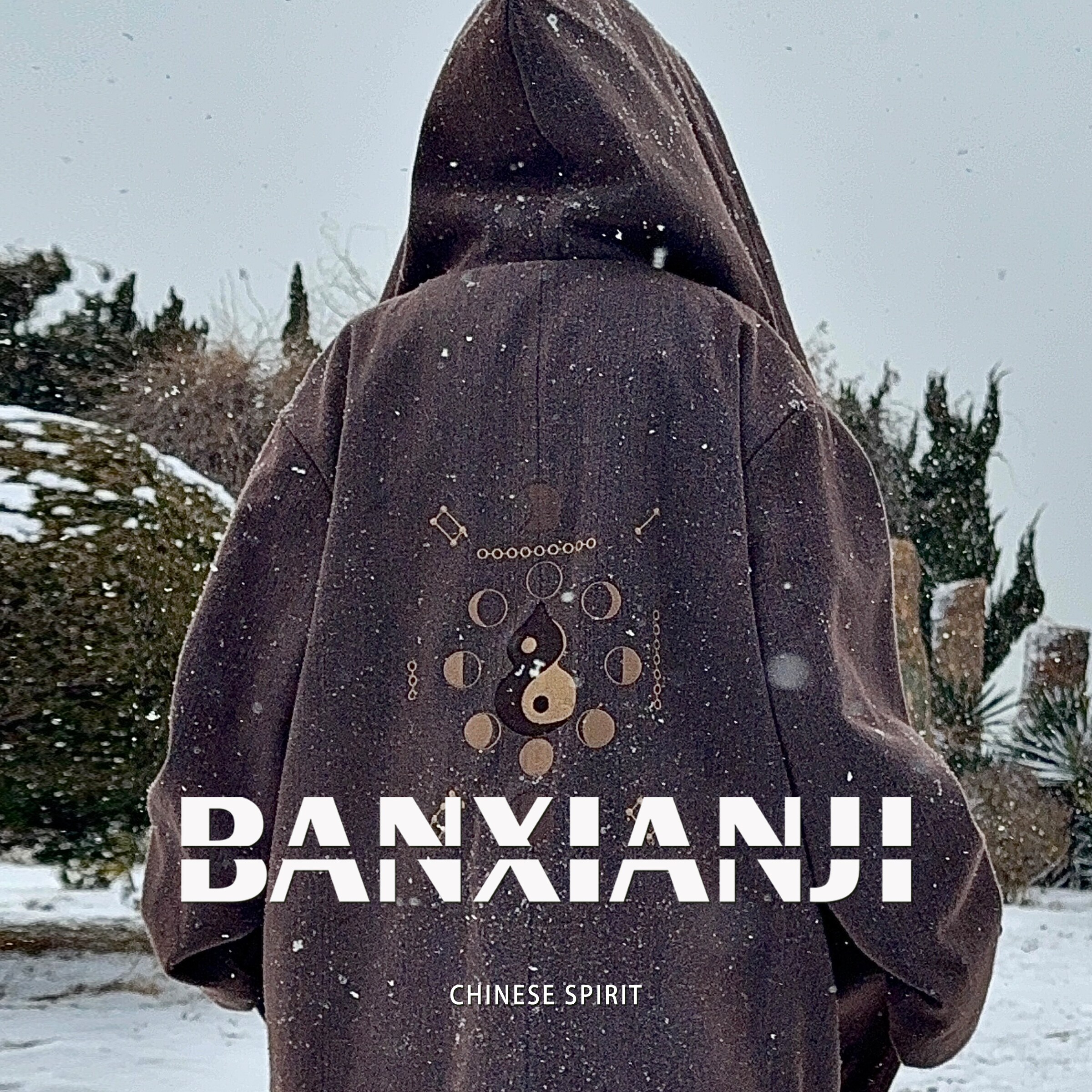 半闲集马年新品<河图洛书>牛仔连帽大衣新中式国潮外套春秋休闲