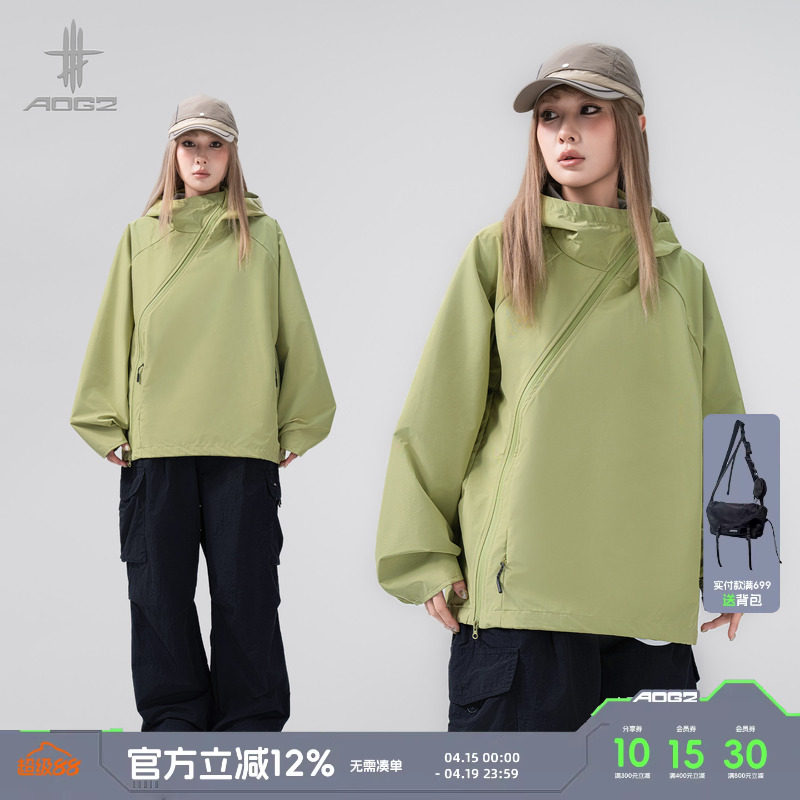 AOGZ美式斜门襟外套男女2026春季新款户外运动徒步夹克卫衣外套潮