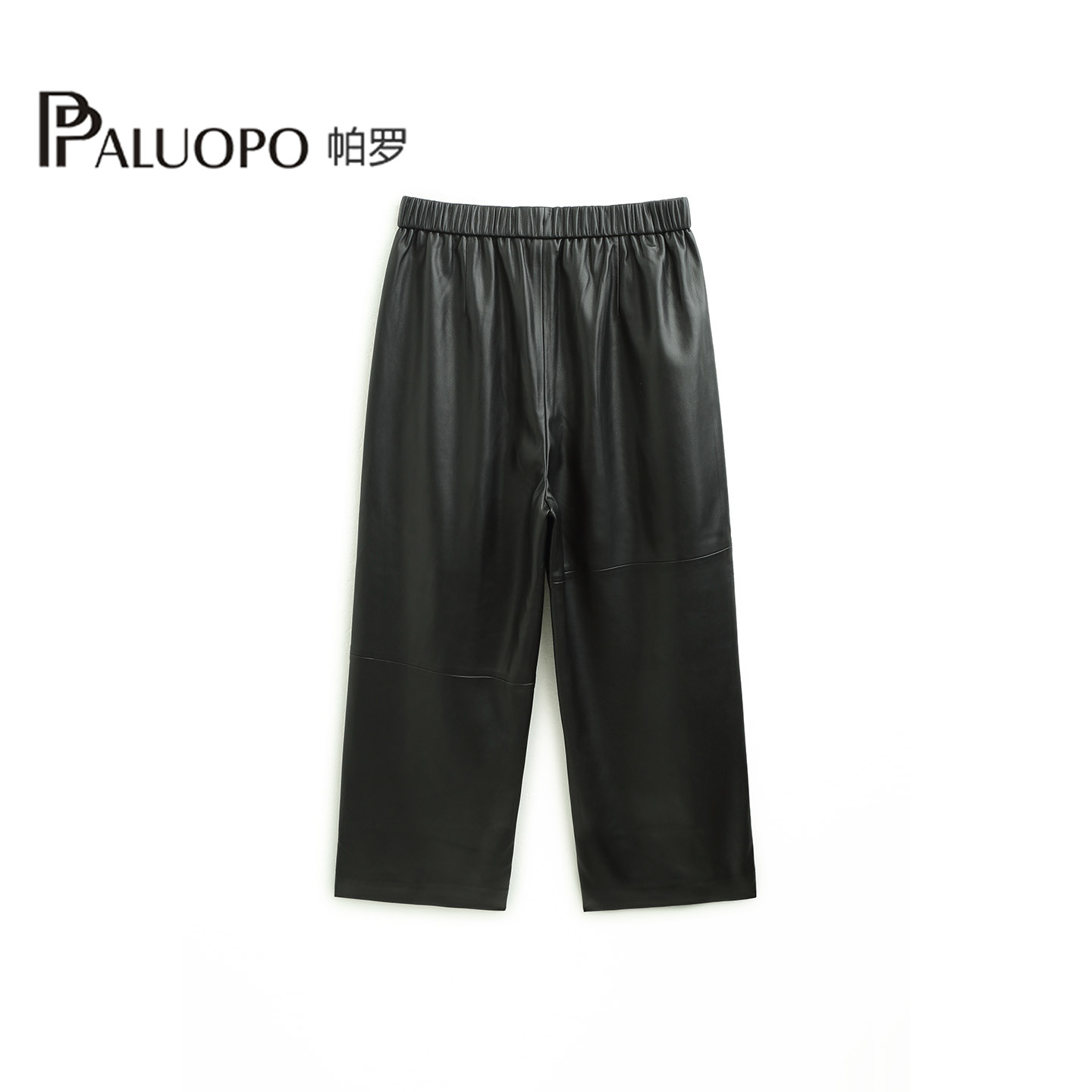 PALUOPO/帕罗新款女士休闲裤高腰显瘦PU皮质感直筒阔腿裤