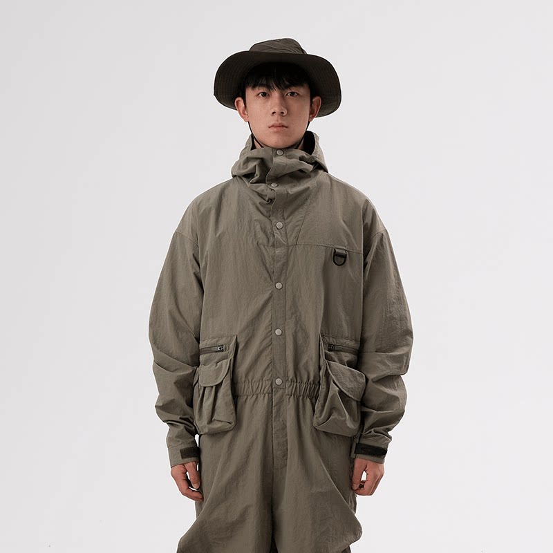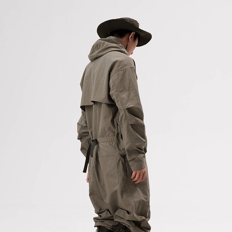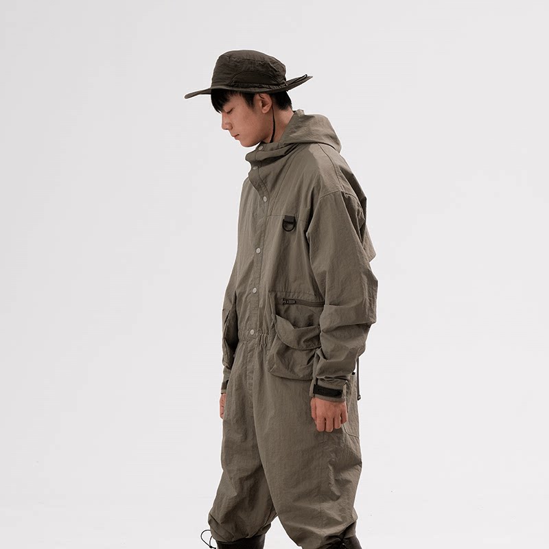 Halcyon 户外多口袋防风连帽连体服男露营防水复古工装长裤女