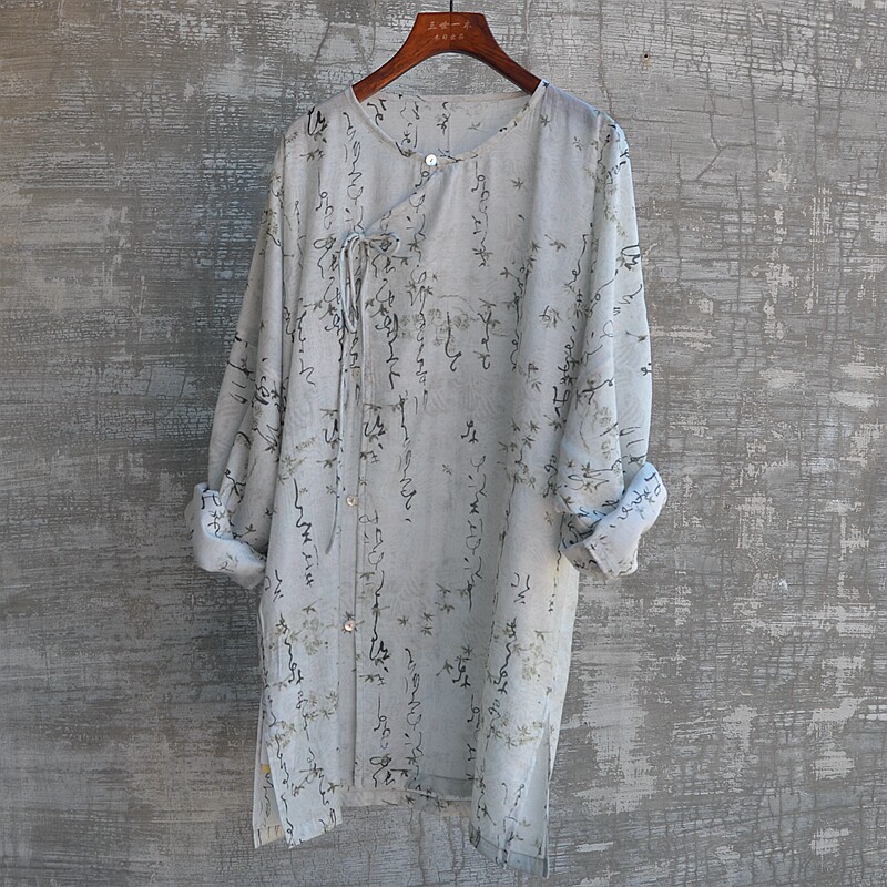 --------------------- 中国风男装印花衬衫无领薄款长袖衬衣中长舒适透气大码上衣国潮 【原售价】699元 【现售价】227元 【推荐理由】