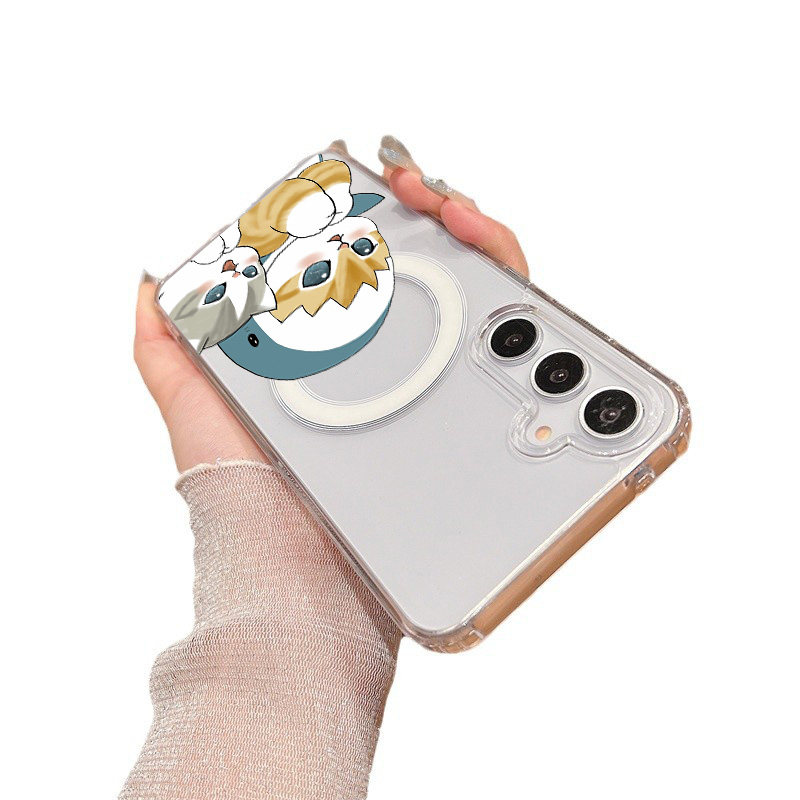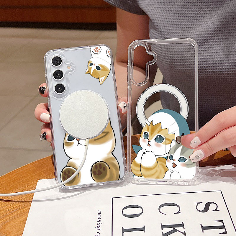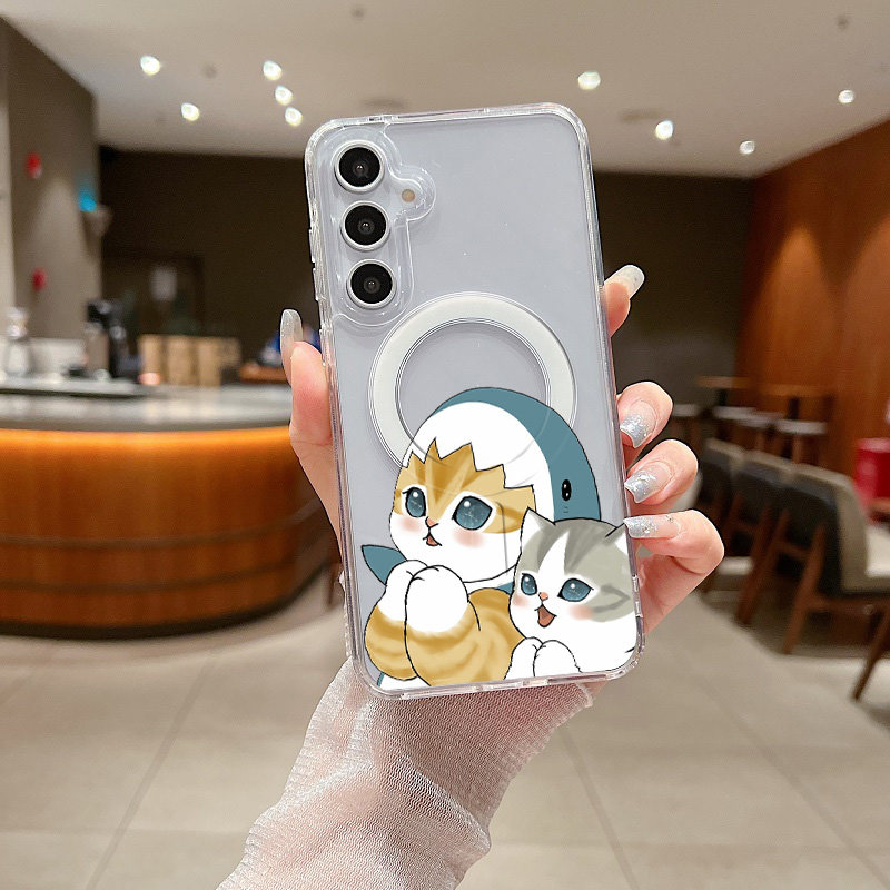 猫猫 鲨鱼猫 适用三星A17 A16 A15 A14手机壳A26 A35 A36防摔透明磁吸壳硬壳高级A54 A56 A56 S25 S24 S23