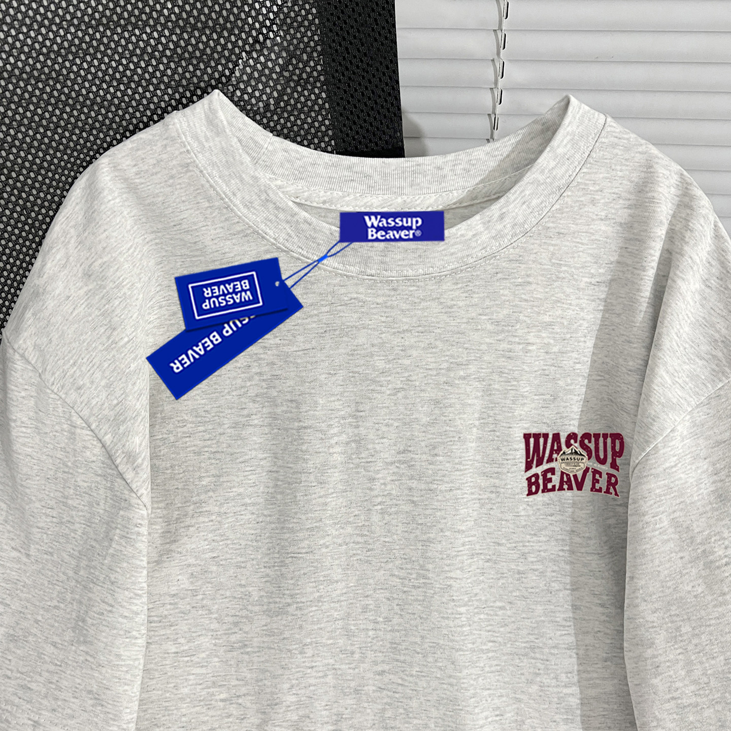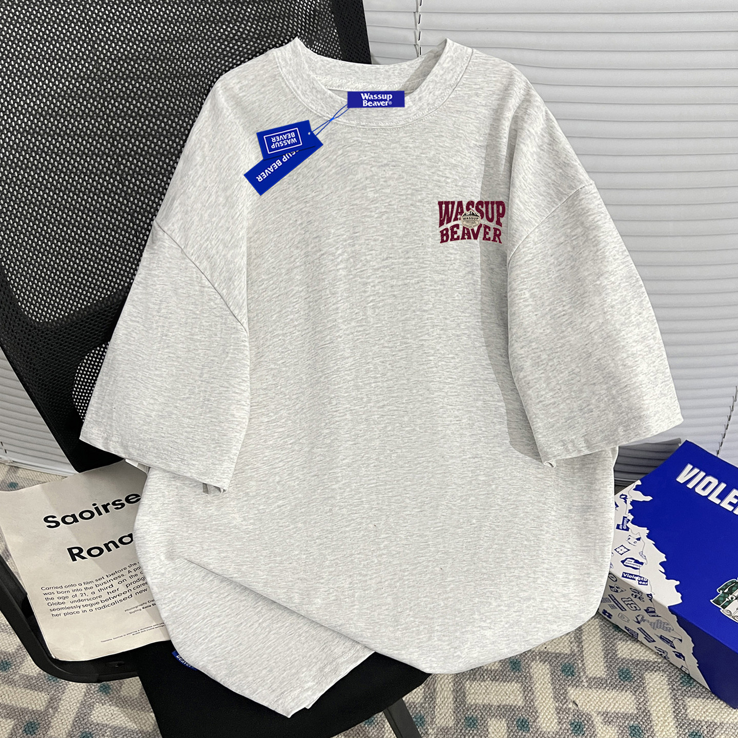 WASSUP BEAVER设计感后背印花情侣款帅气圆领短袖T恤潮流纯棉上衣