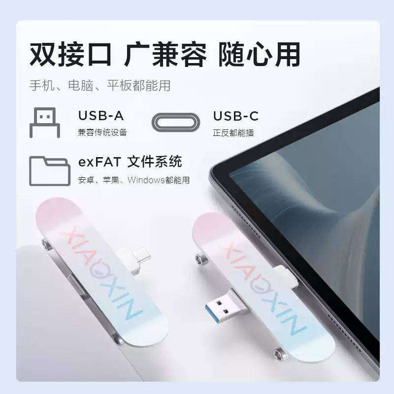 联想小新滑板限定款U盘 USB3.2固态U盘128G金属双接口手机电脑U盘