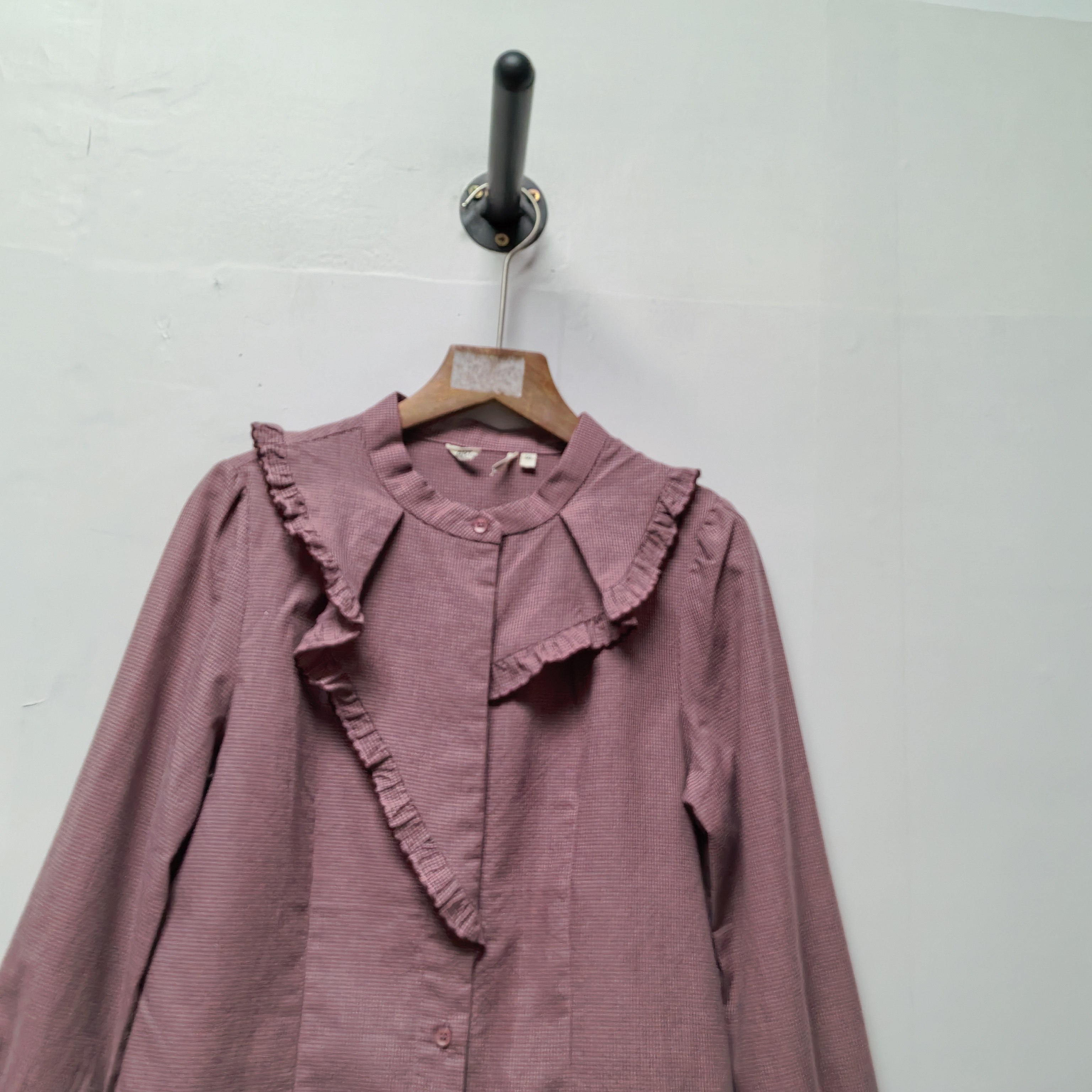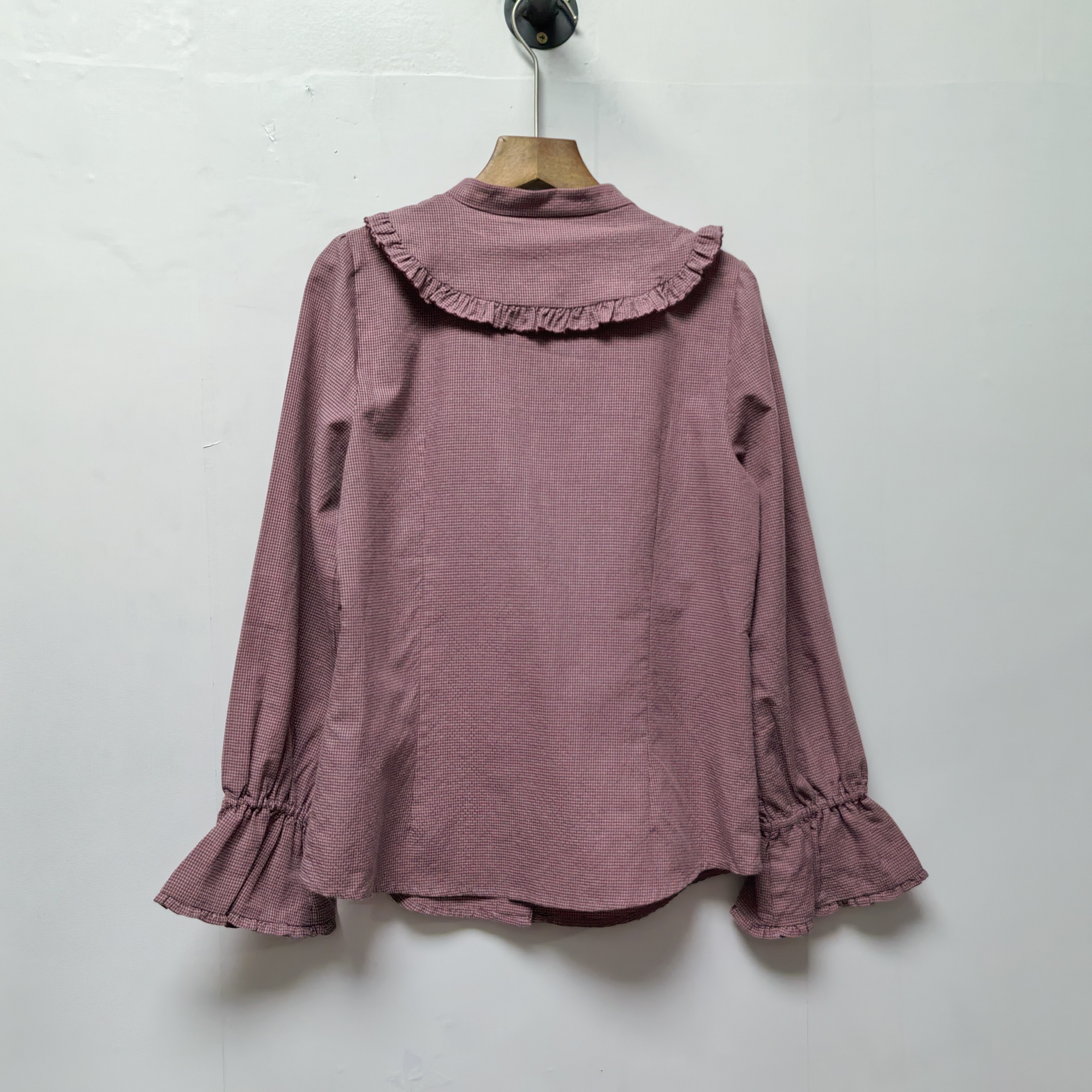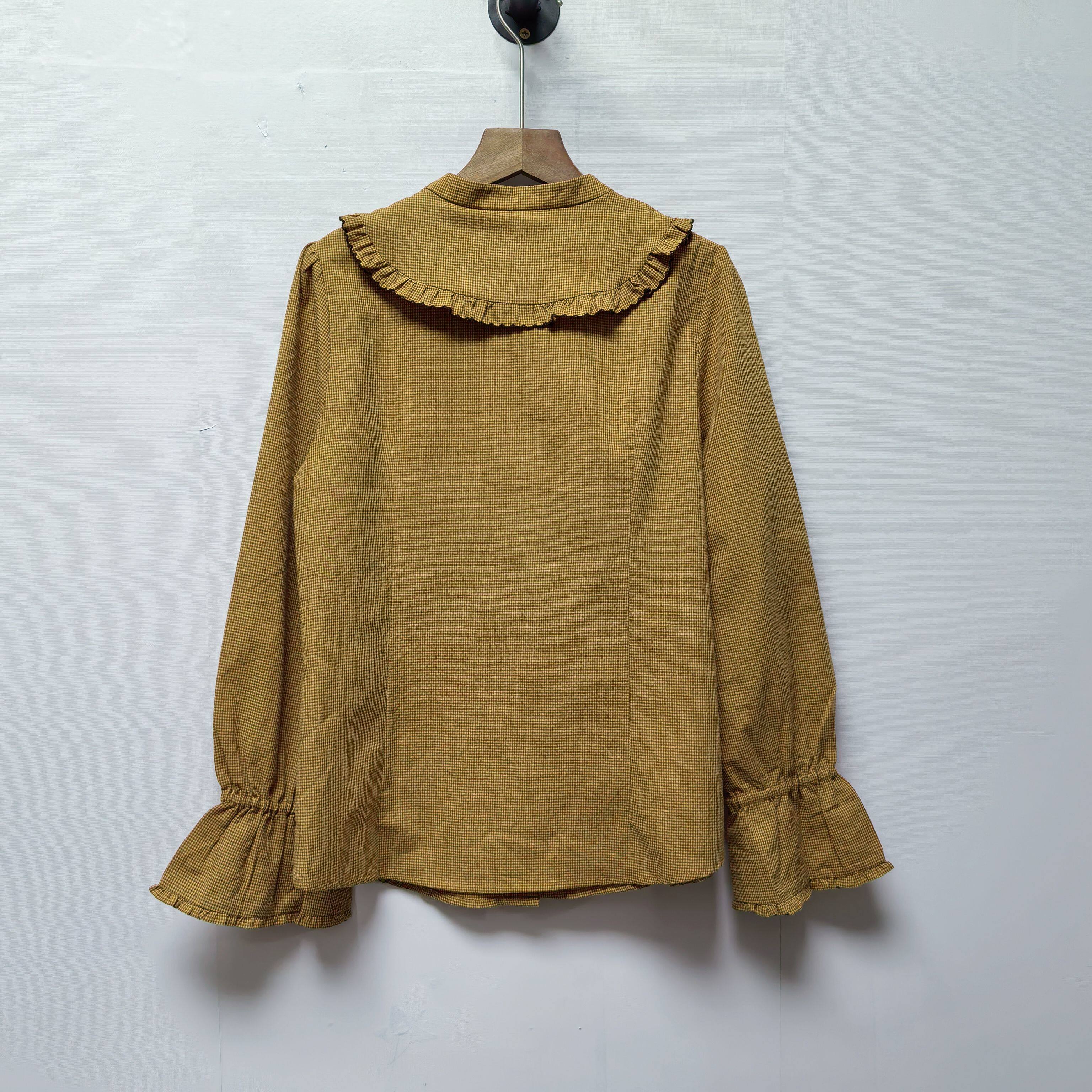 --------------------- 【艺】去标撤柜格子衬衫长袖立领木耳边衬衣喇叭袖春秋上衣C010 【原售价】49元 【现售价】36.75元 【推荐理由】
