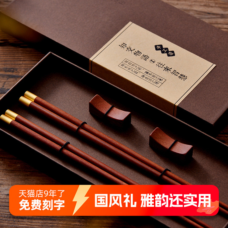 芙盼高档中式家用红木礼盒装筷子出国送老外传统礼物免费定制刻字
