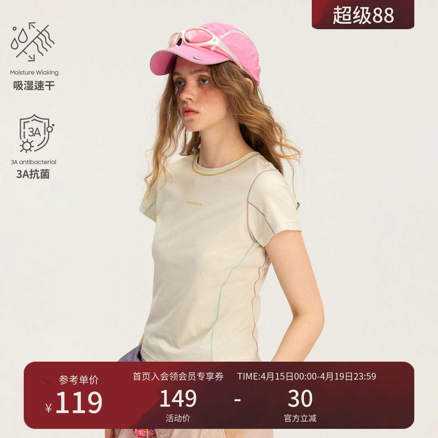 --------------------- 瞬时山野Monterest阳离子3A抗菌吸湿速干修身收腰运动短袖T恤女 【原售价】149元 【现售价】119元 【推荐理由】