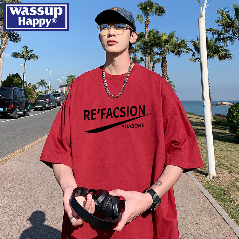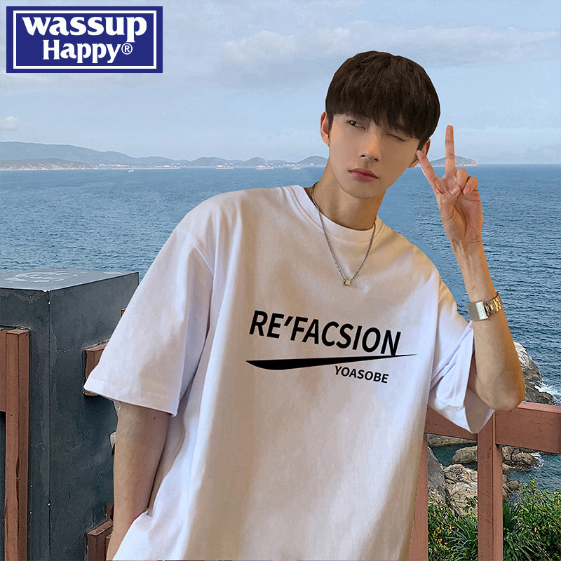 --------------------- wassup happy重磅圆领短袖t恤男2025夏季新款宽松潮流大码半截袖 【原售价】199元 【现售价】139元 【推荐理由】