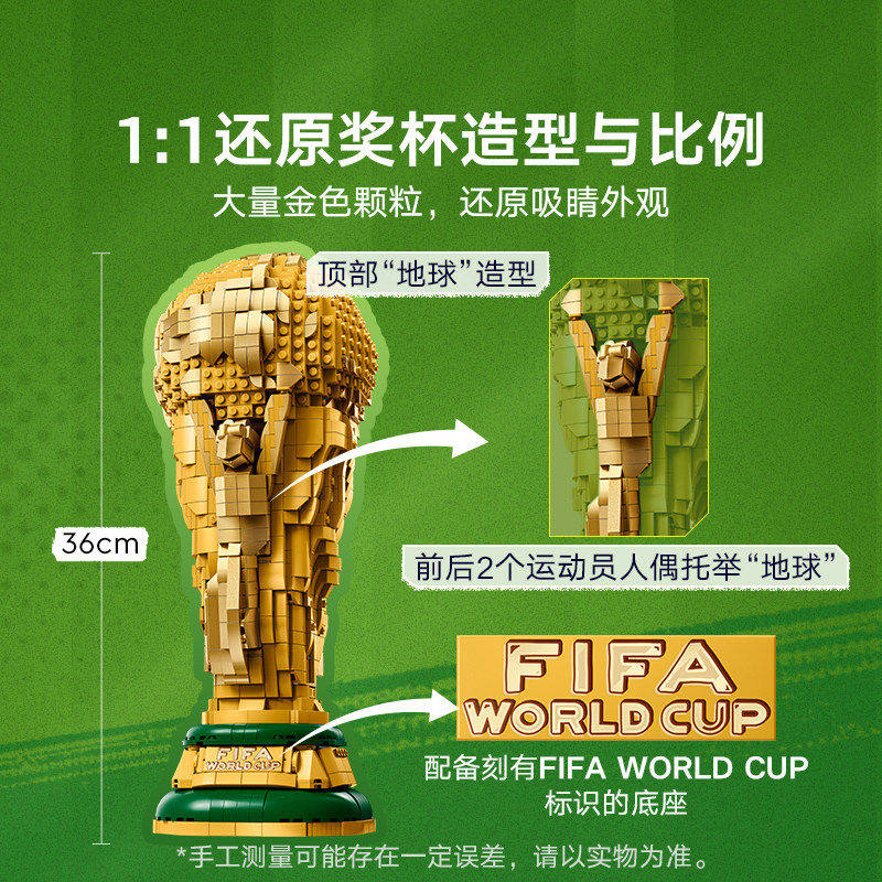 --------------------- 中国积木国际足联世界杯大力神杯43020足球奖杯球迷拼装玩具礼物 【原售价】98.79元 【现售价】88.89元 【推荐理由】