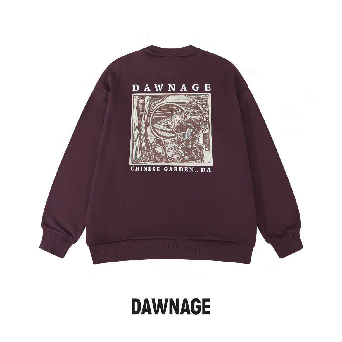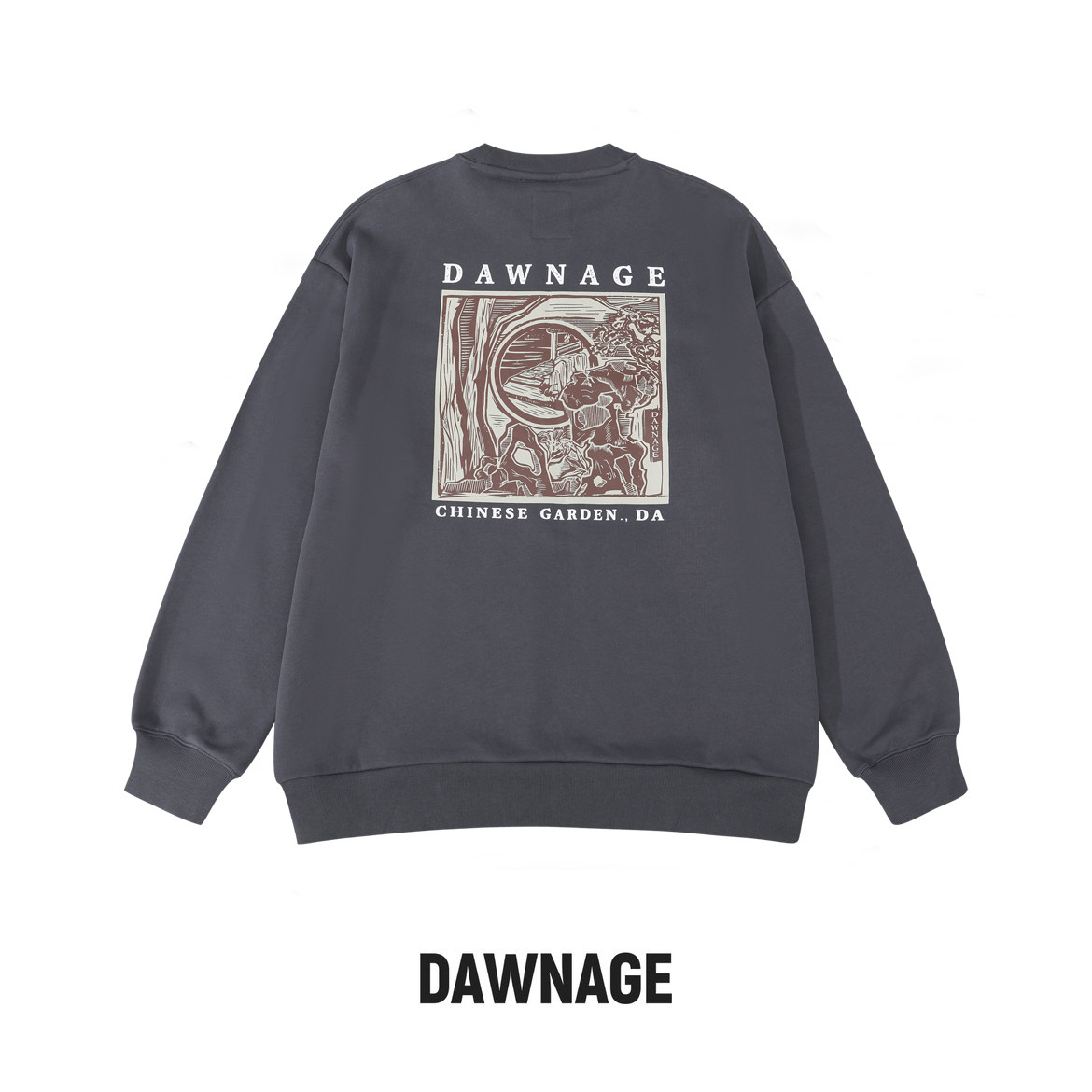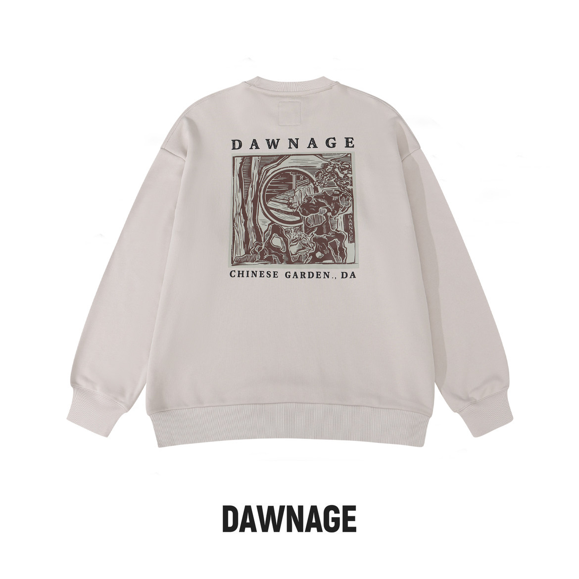 旦时代DAWNAGE新中式园林印花卫衣重磅480G纯棉保暖百搭情侣国潮