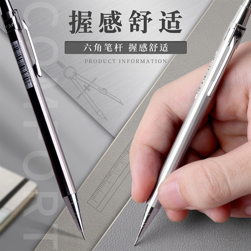 淘宝晨光金属自动铅笔不断芯HB小学生用自动笔0.5重手感无毒2B初中生0.7绘画素描低重心带橡皮头按动式套装考试笔