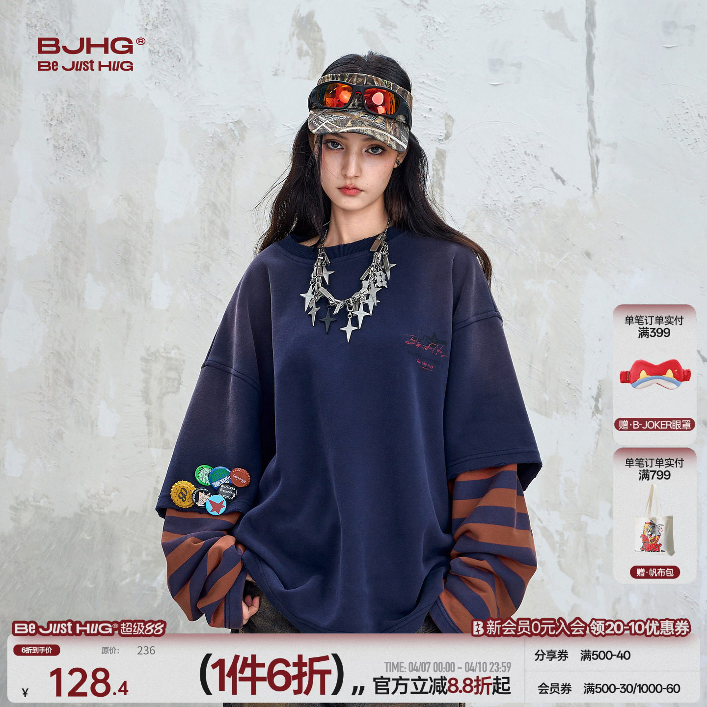 --------------------- BJHG不计后果美式卫衣男款秋冬新款复古休闲宽松假两件长袖T恤女 【原售价】269元 【现售价】128元 【推荐理由】