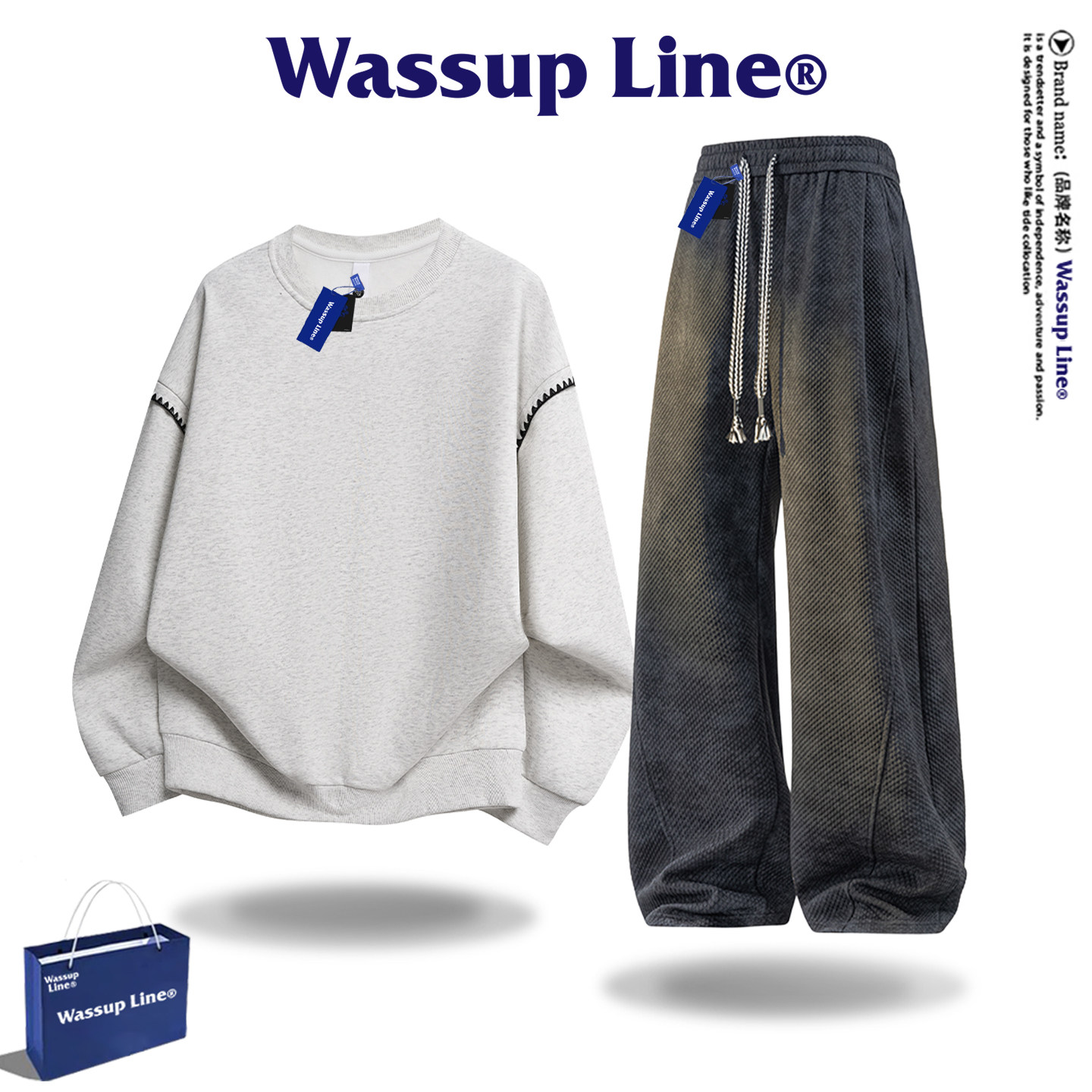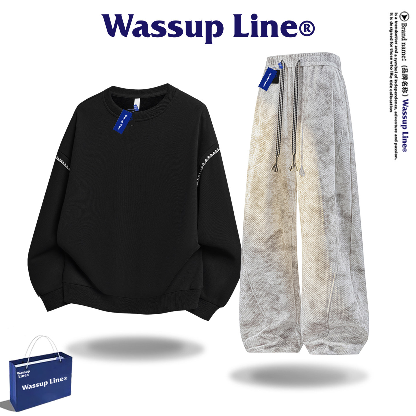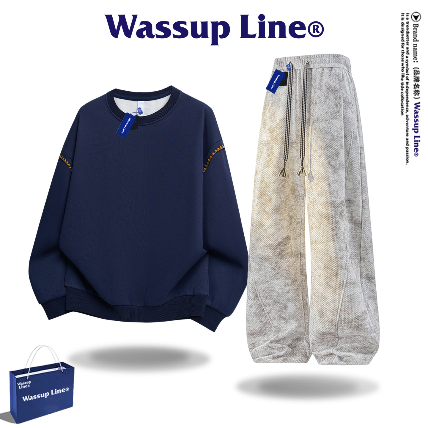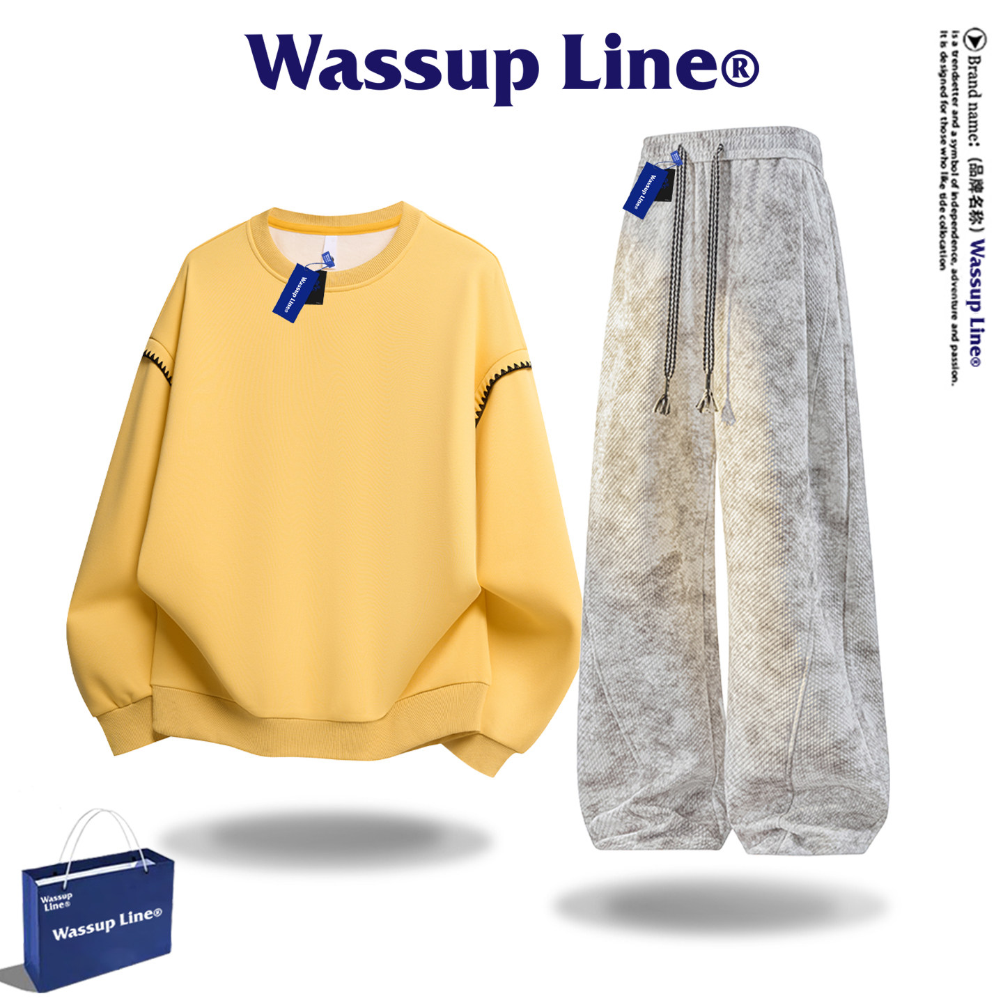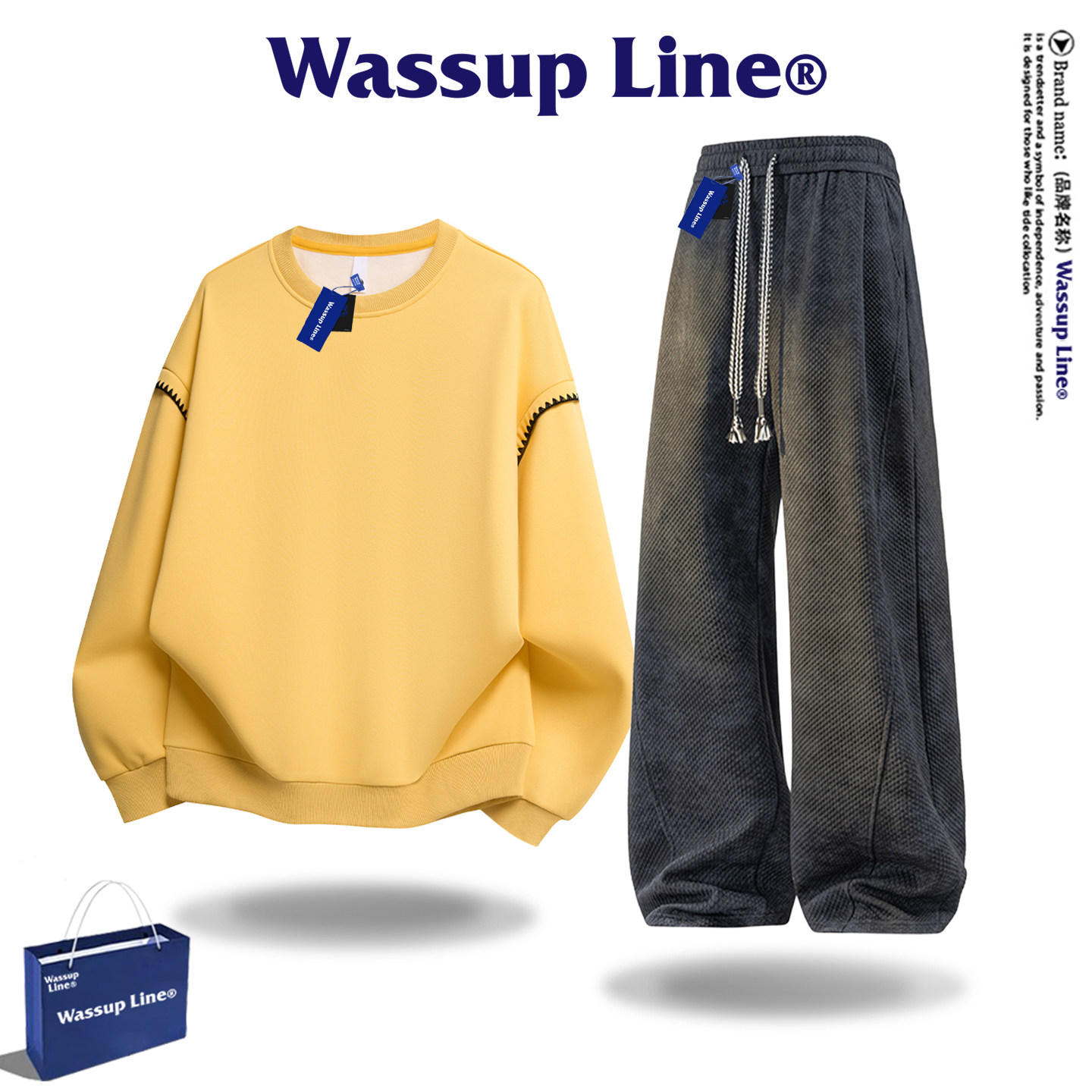 WASSUP Line潮牌美式卫衣套装男款春季撞色长袖休闲宽松运动套装