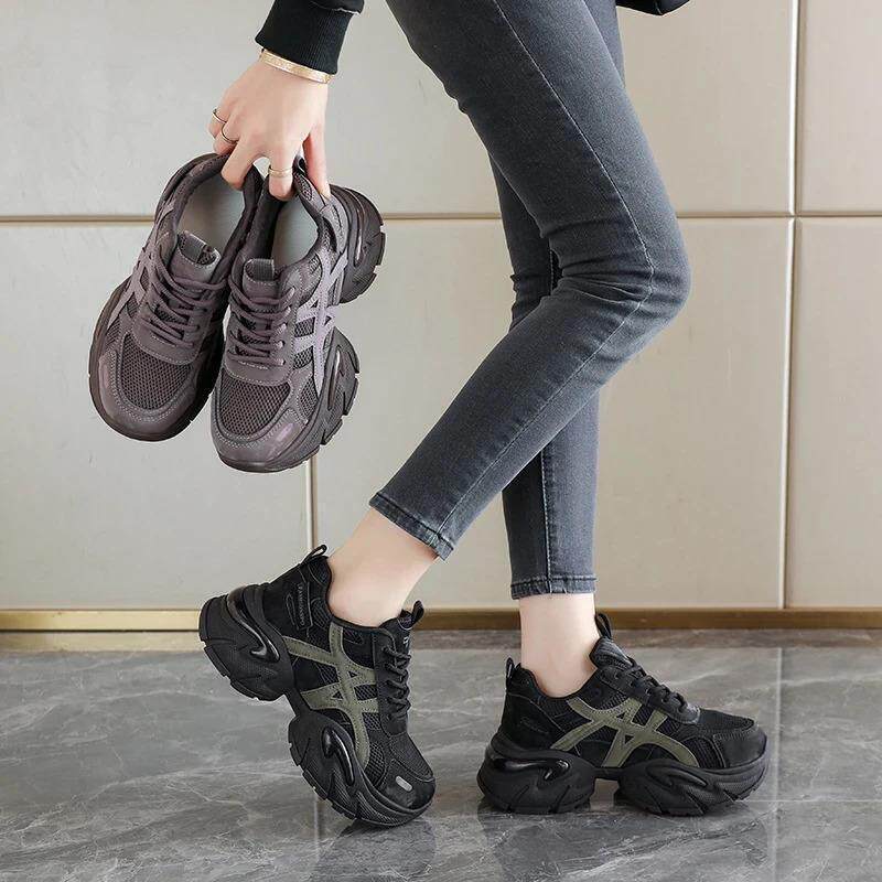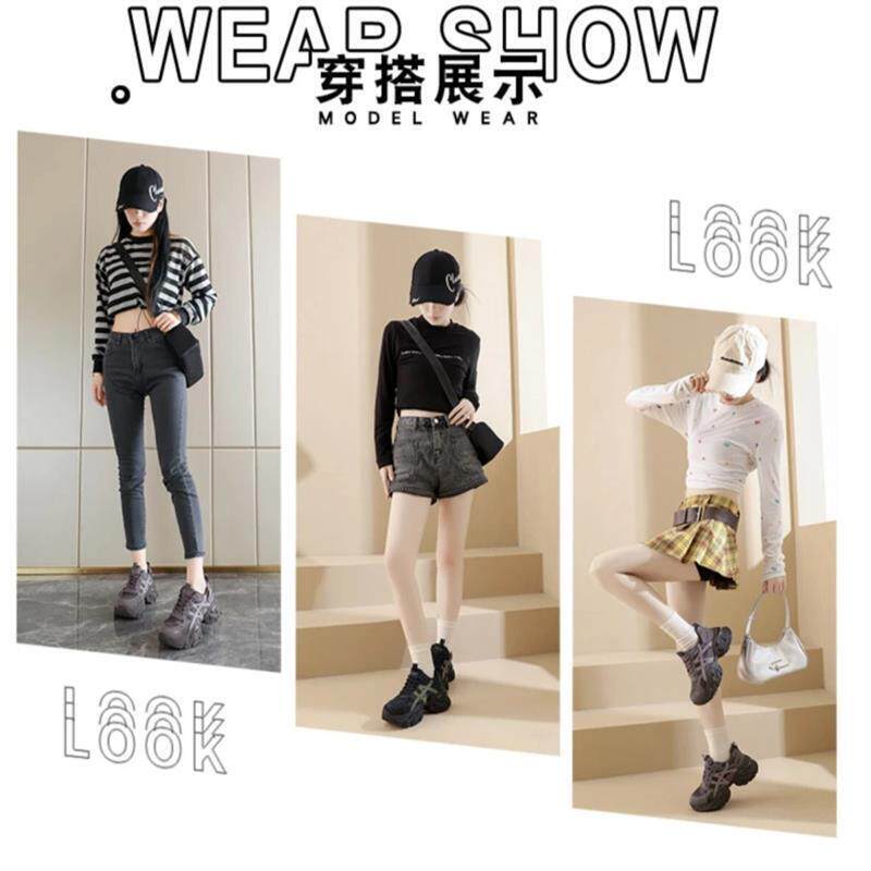 坤元百货商铺春秋增高老爹鞋网鞋女透气厚底学生网面运动鞋小白鞋