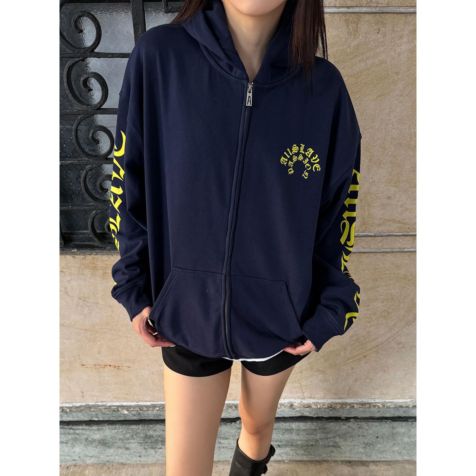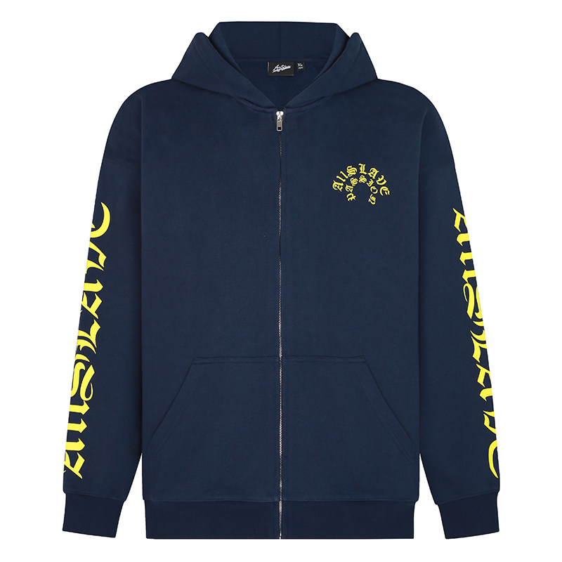 A11SLAVE美式梵文哥特字母印花拉链开衫连帽卫衣高街男女春秋外套