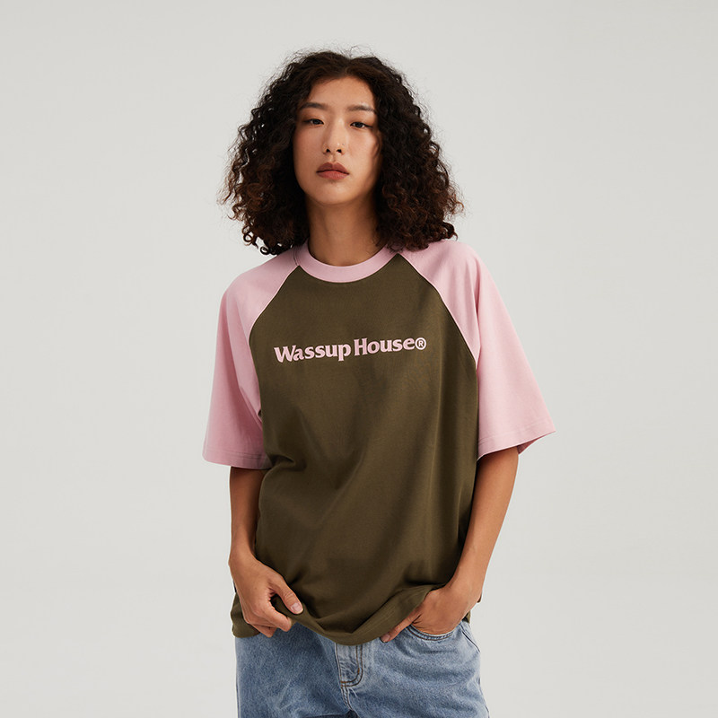 wassuphouse插肩袖T恤基础拼色潮牌美式纯棉体恤撞色女士上衣