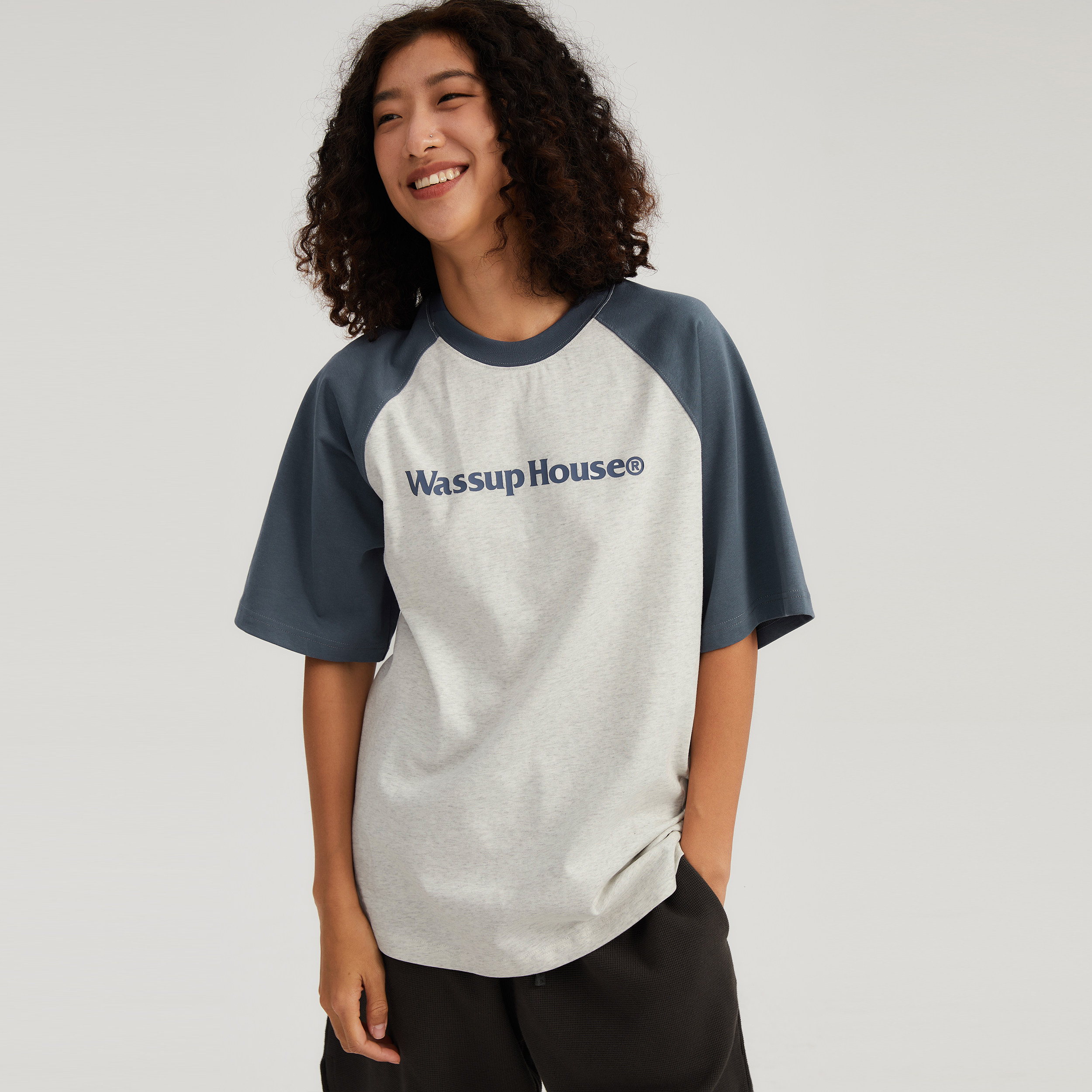 --------------------- wassuphouse插肩袖T恤基础拼色潮牌美式纯棉体恤撞色女士上衣 【原售价】159元 【现售价】86.2元 【推荐理由】
