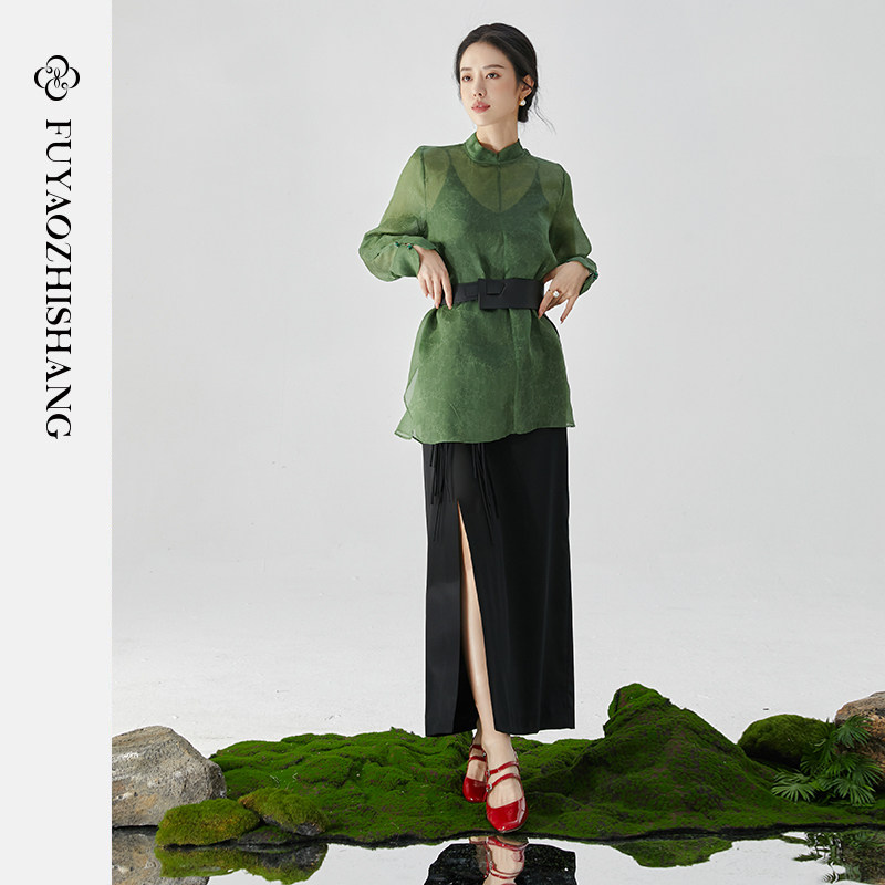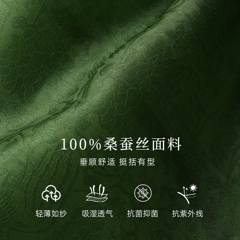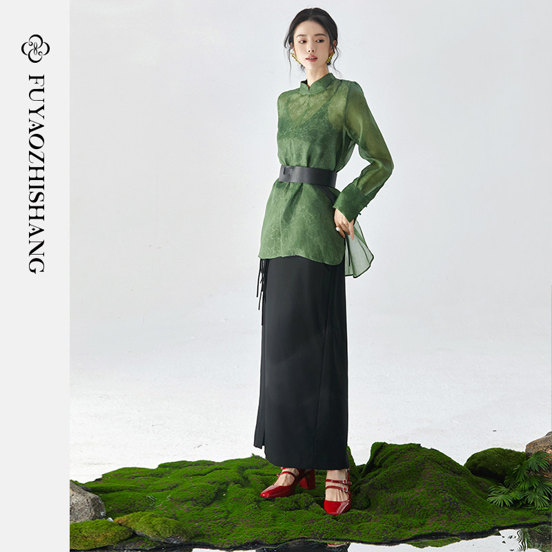 --------------------- FUYAO扶摇 独特小众新中式清冷绿古典纹样低调轻奢轻薄桑蚕丝衬衫 【原售价】499元 【现售价】439元 【推荐理由】