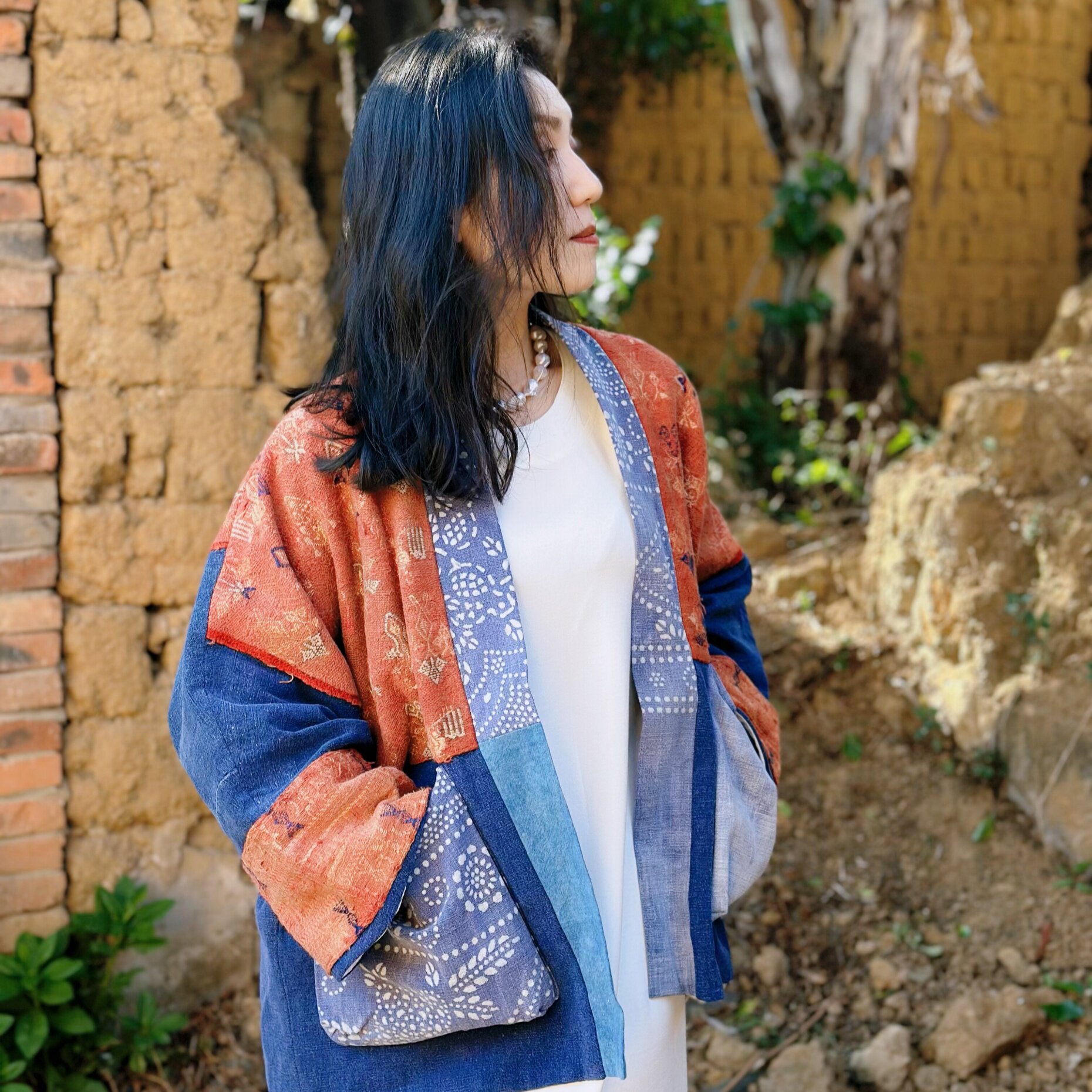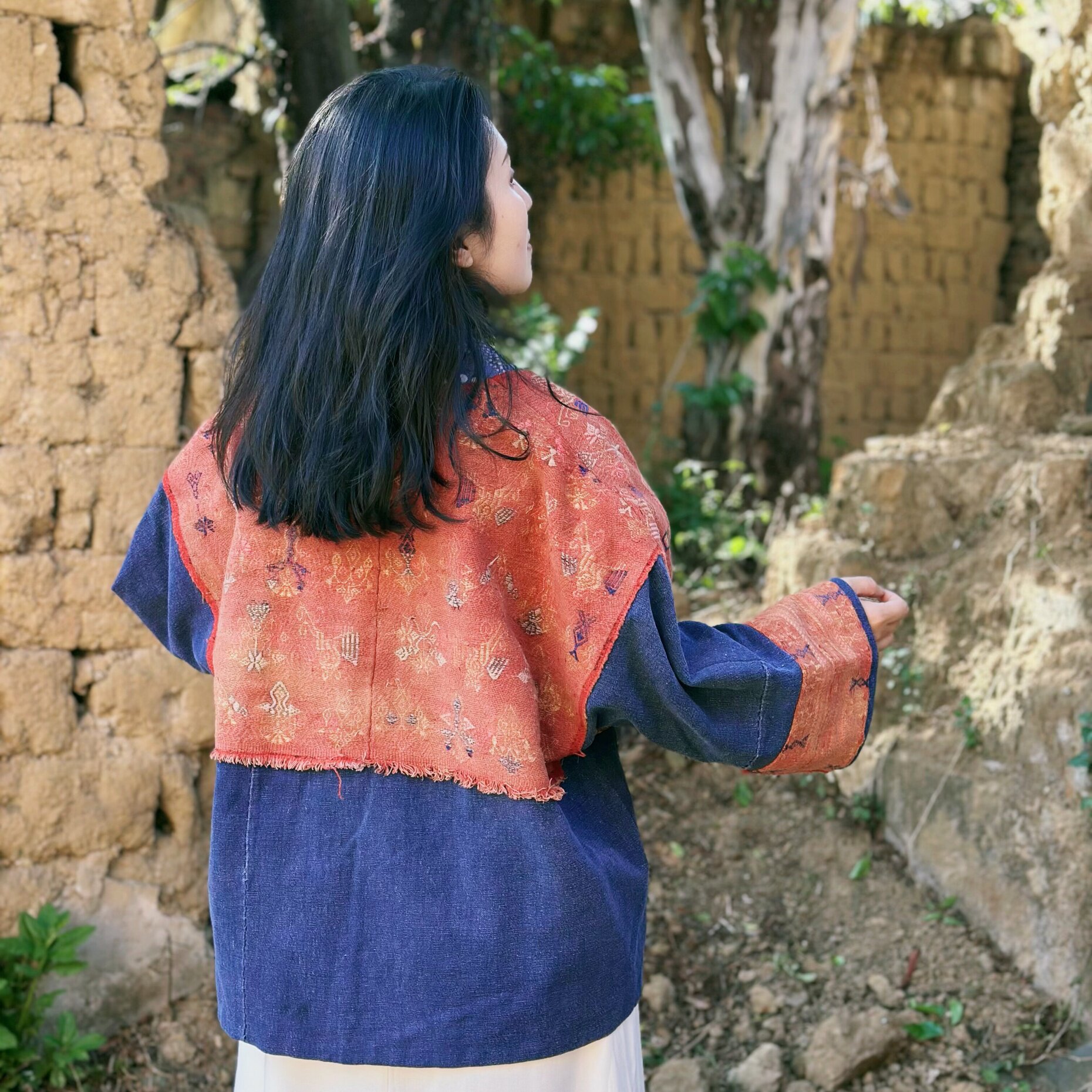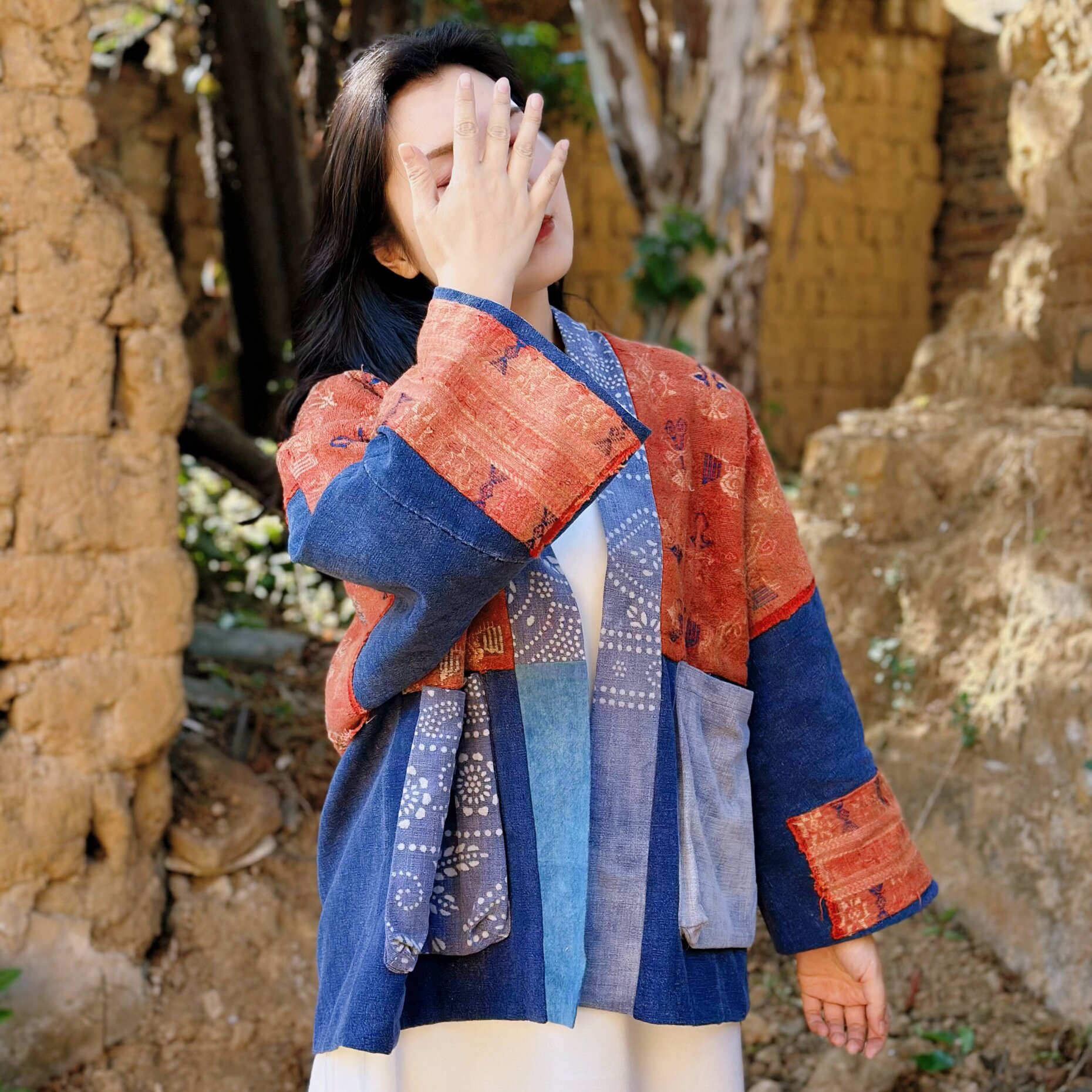 --------------------- 复古织锦拼接蜡染开衫 民族风撞色拼接土布外套 【原售价】1280元 【现售价】1280元 【推荐理由】