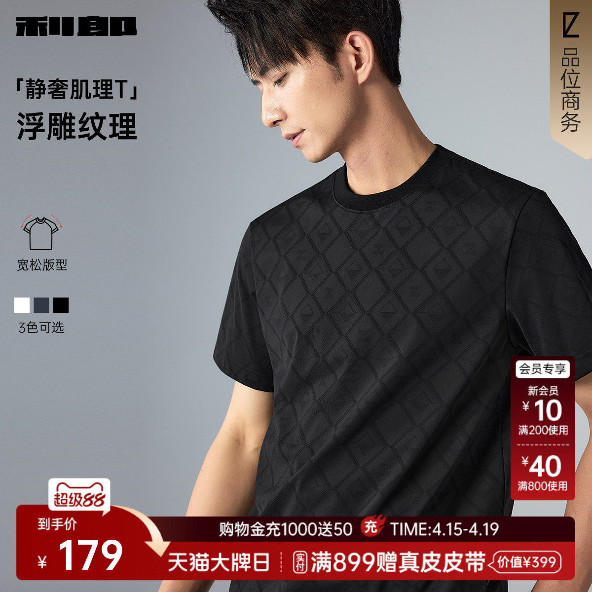--------------------- 【肌理提花】利郎官方短袖T恤男宽松26夏季黑色质感暗纹半袖男装 --------------------- --------------------- 【原价】439元 【券后价】169元