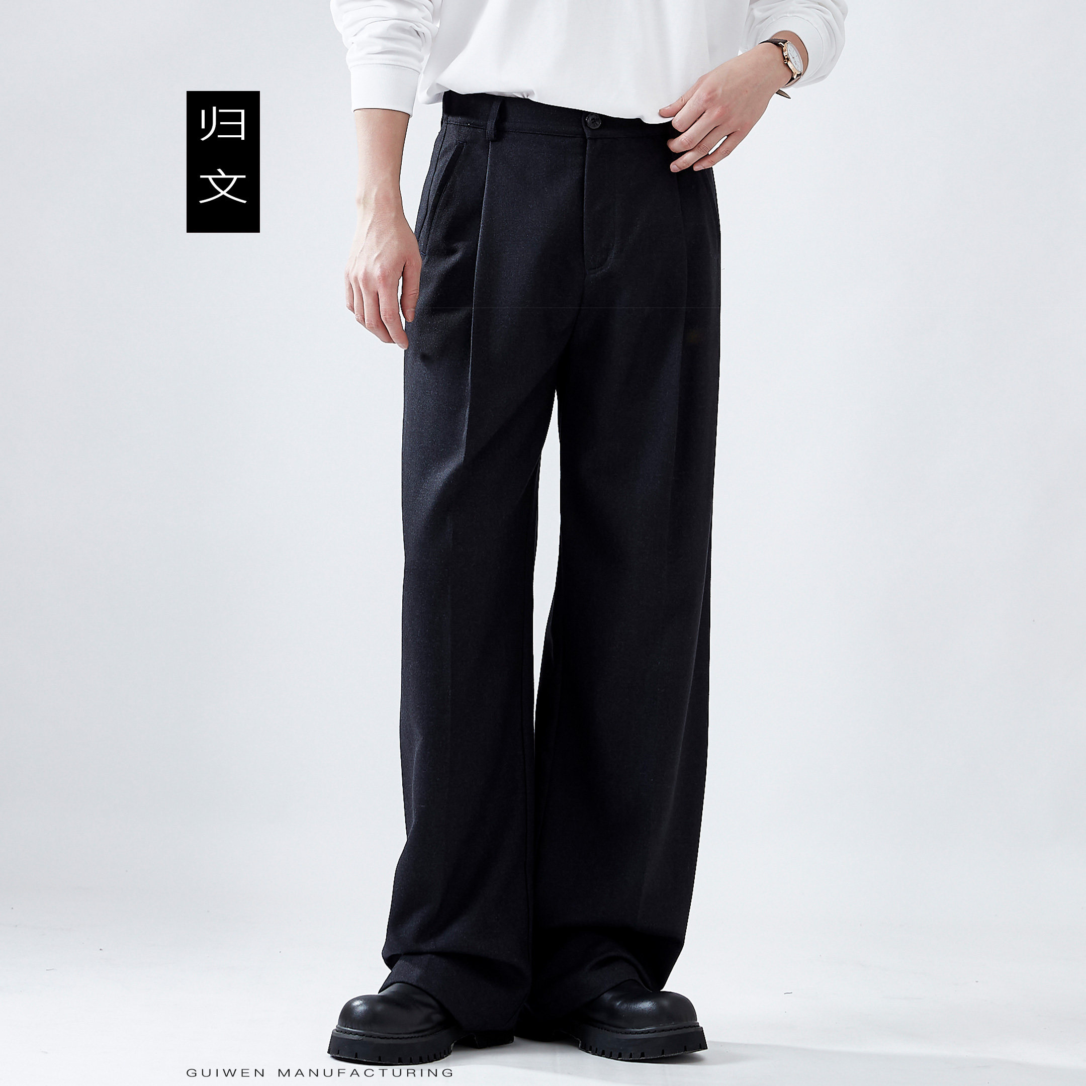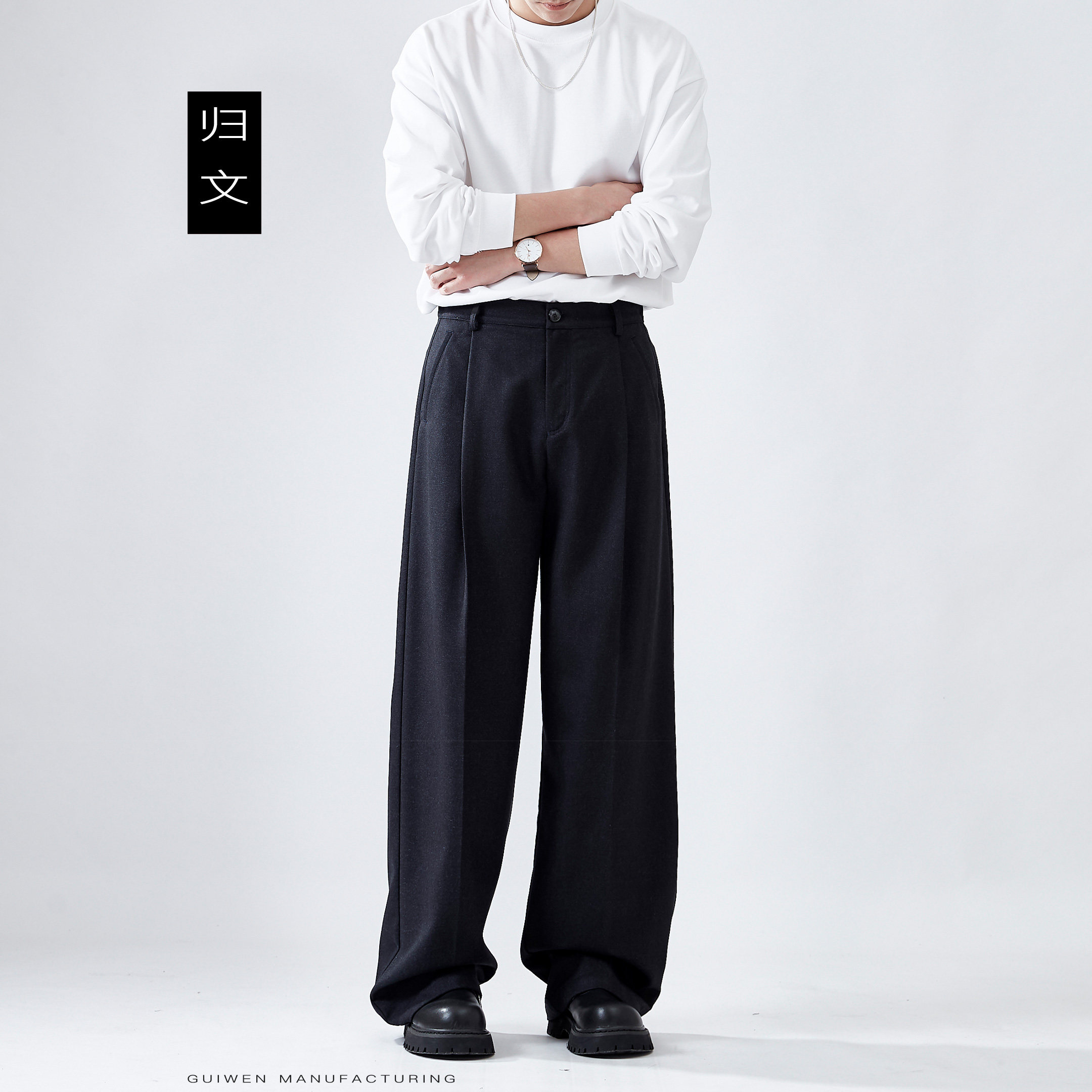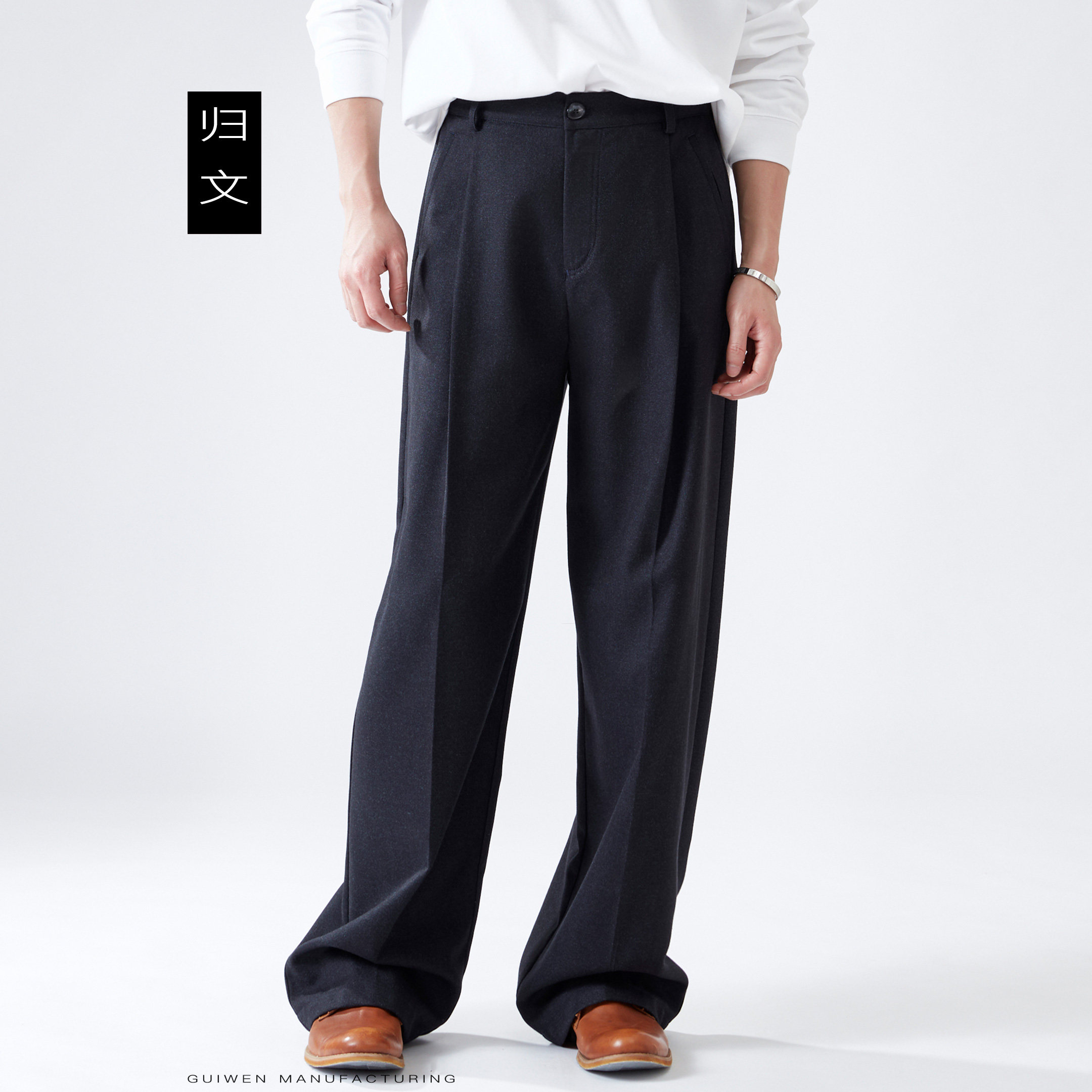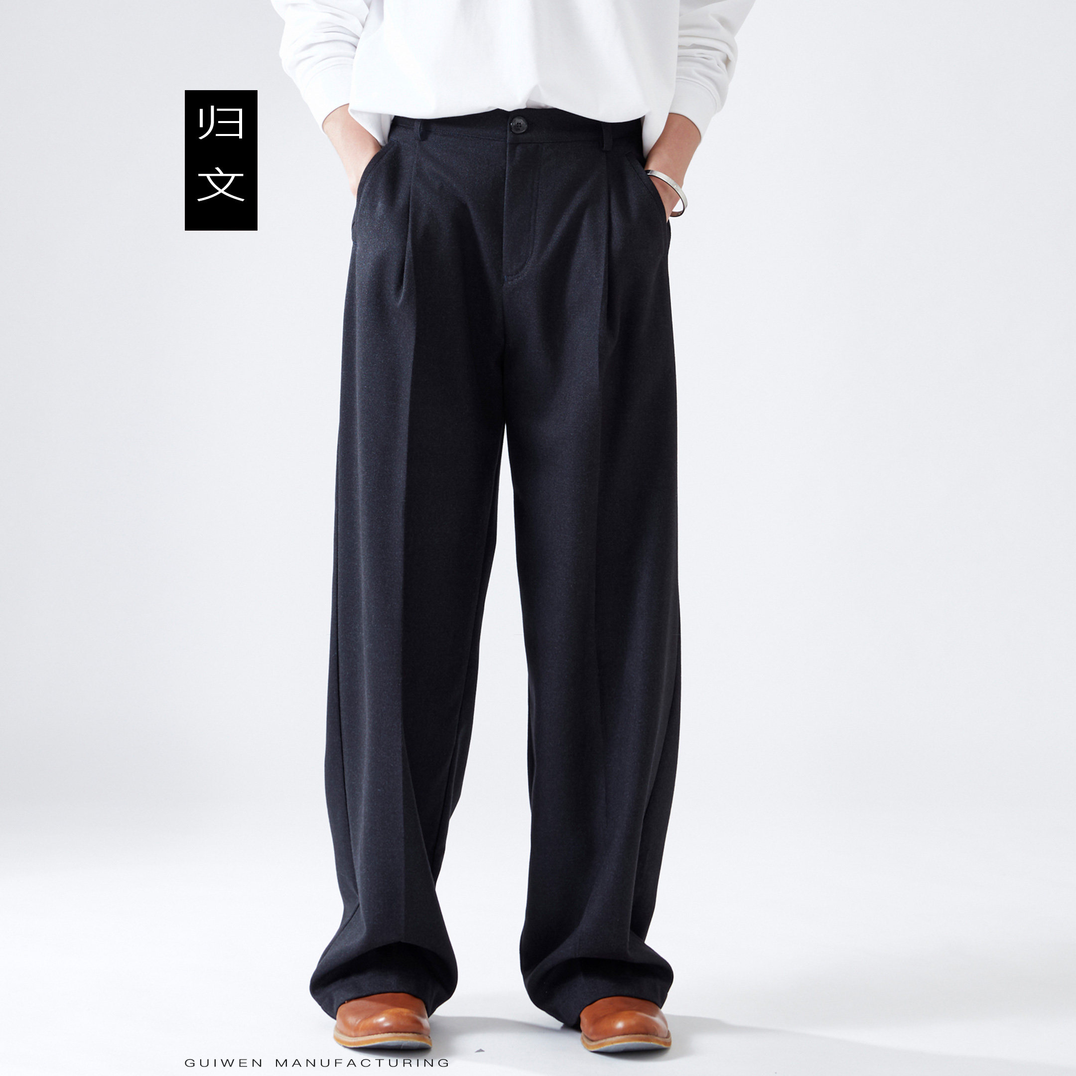 归文春秋加厚羊毛休闲裤男宽松直筒阔腿裤垂感西裤裤子男大码男裤