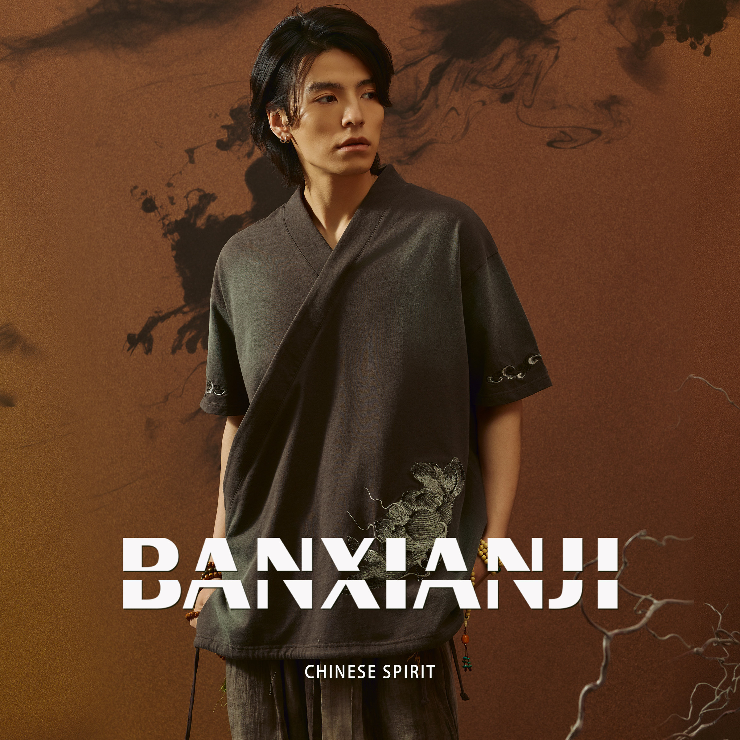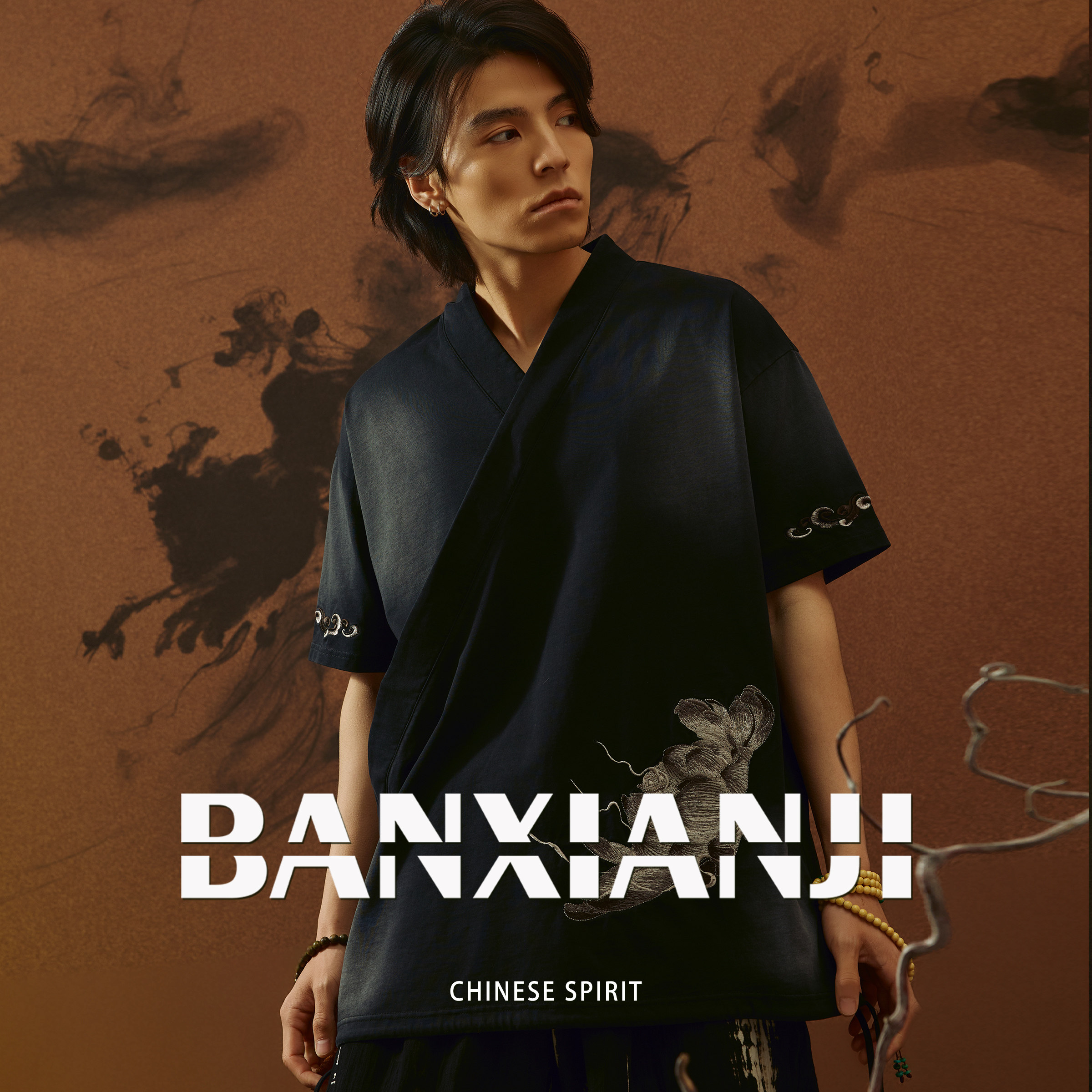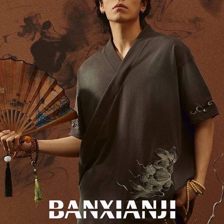 淘宝半闲集<真善奉行>汉服领t恤男新中式国风刺绣短袖国潮复古半袖