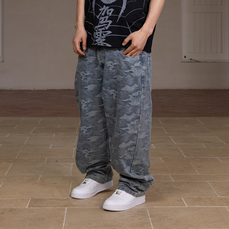 AVENUESON大道之子2025蓝色提花迷彩滑板休闲长裤牛仔裤
