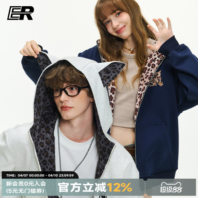 淘宝【明星同款】ER豹纹小狗耳朵连帽开衫卫衣男女春季街头风潮流外套