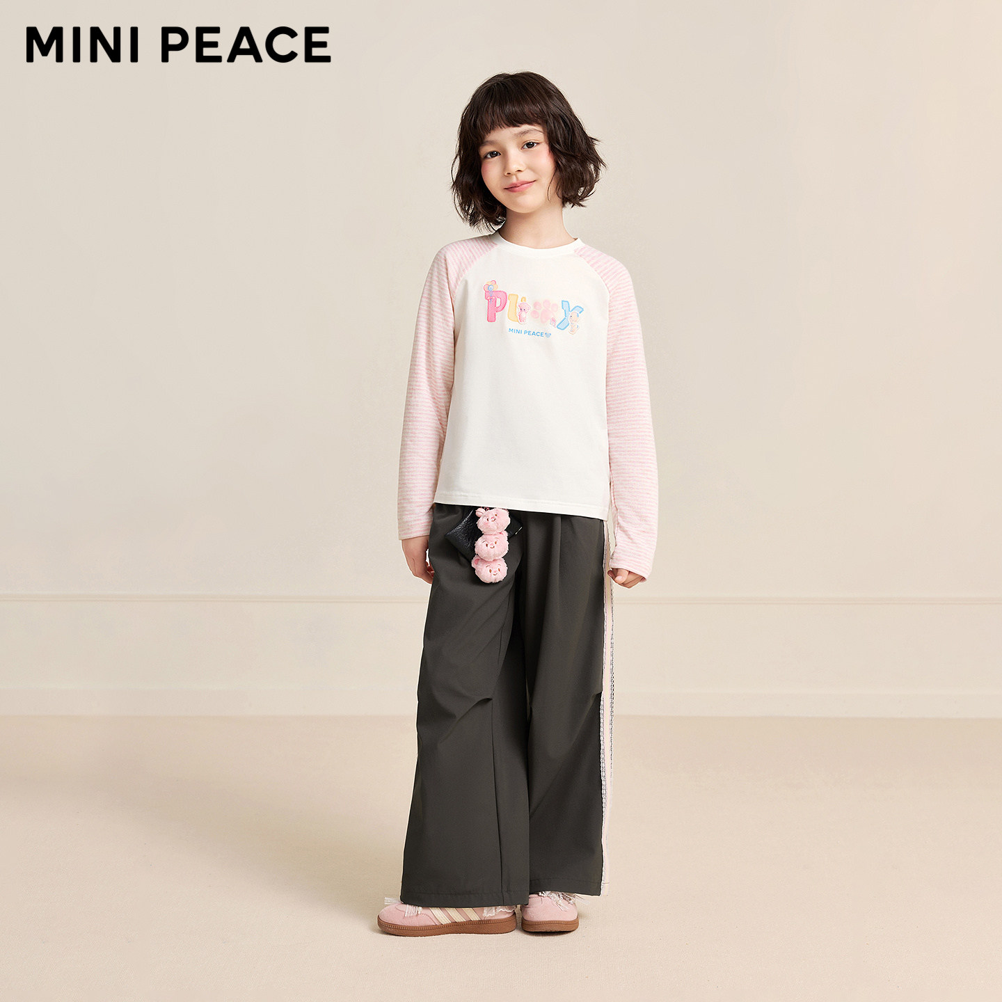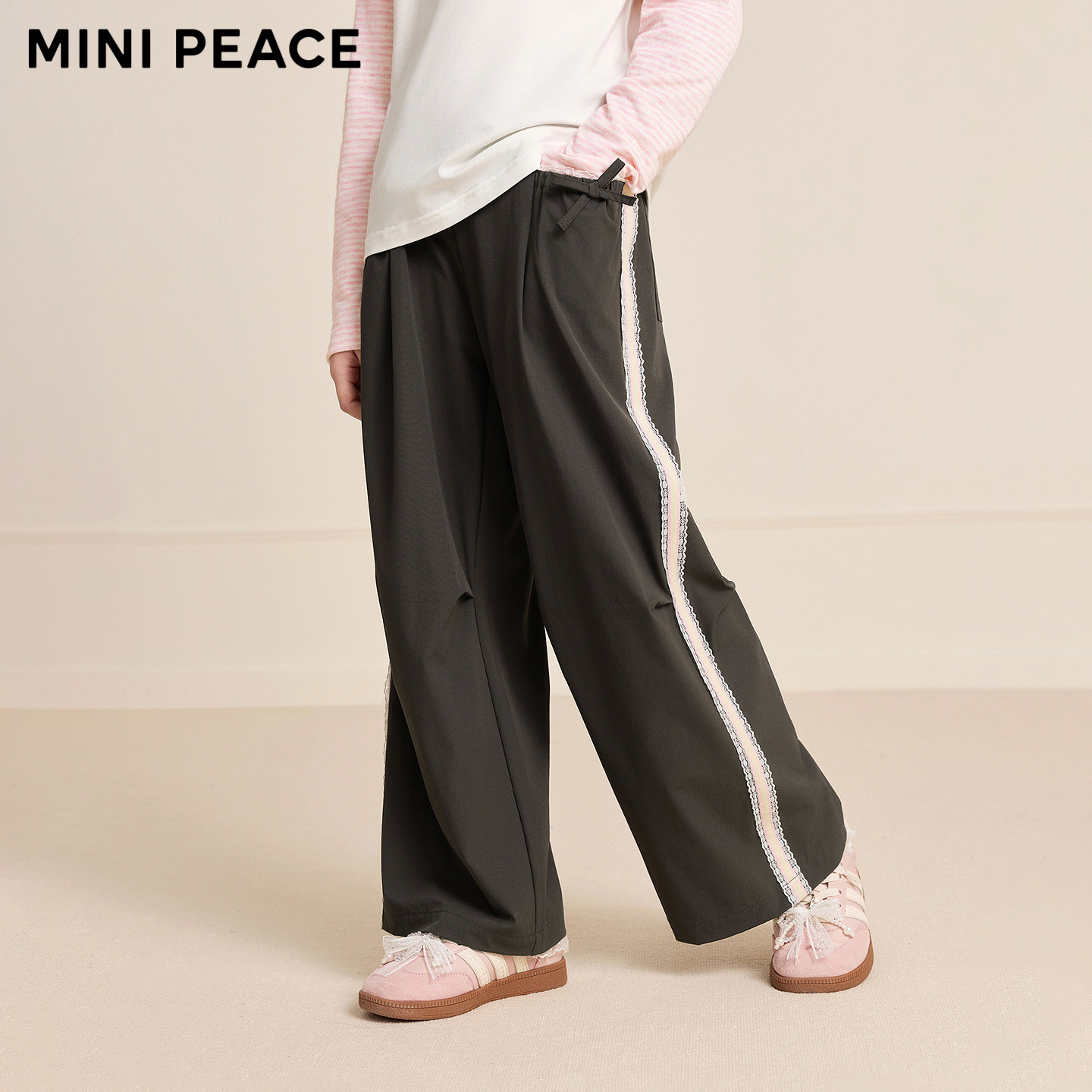 MINIPEACE太平鸟童装女童裤子春季新款儿童裤子花边直筒拖地裤