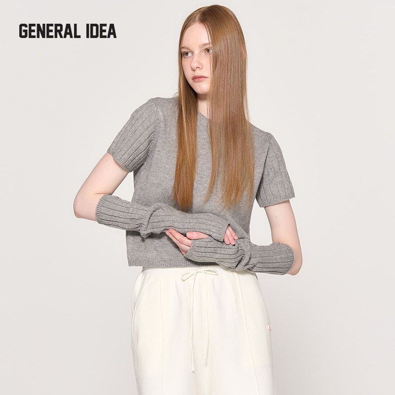 GENERAL IDEA可拆卸袖套针织衫女短袖毛韩系设计感上衣通勤毛衫春