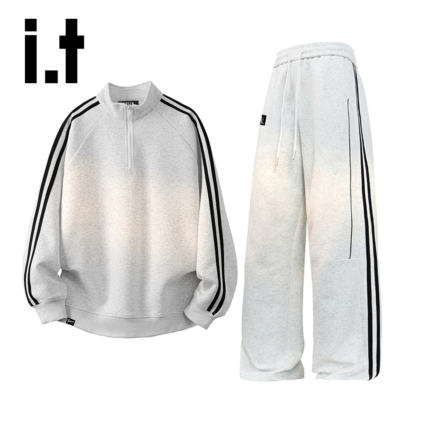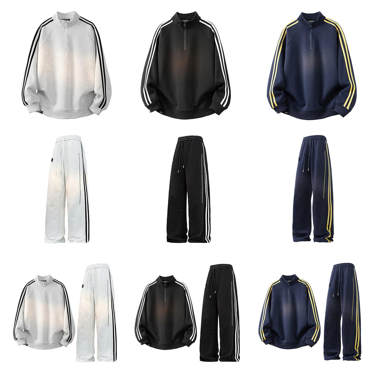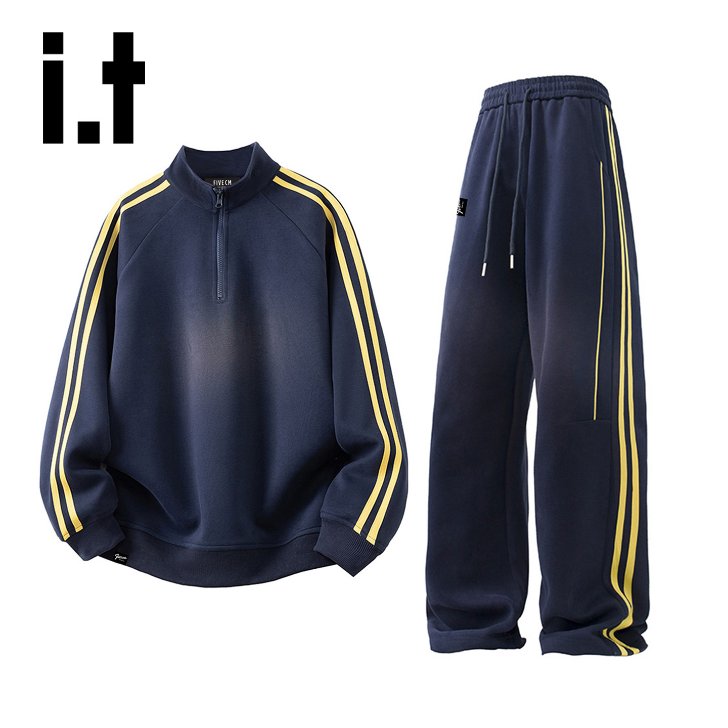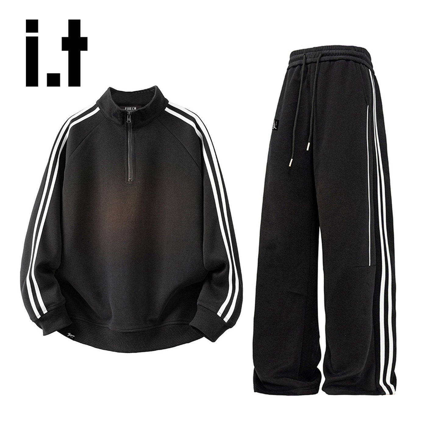 淘宝it :5cm/FIVECM美式休闲套装男士春秋复古立领条纹卫衣长裤两件套
