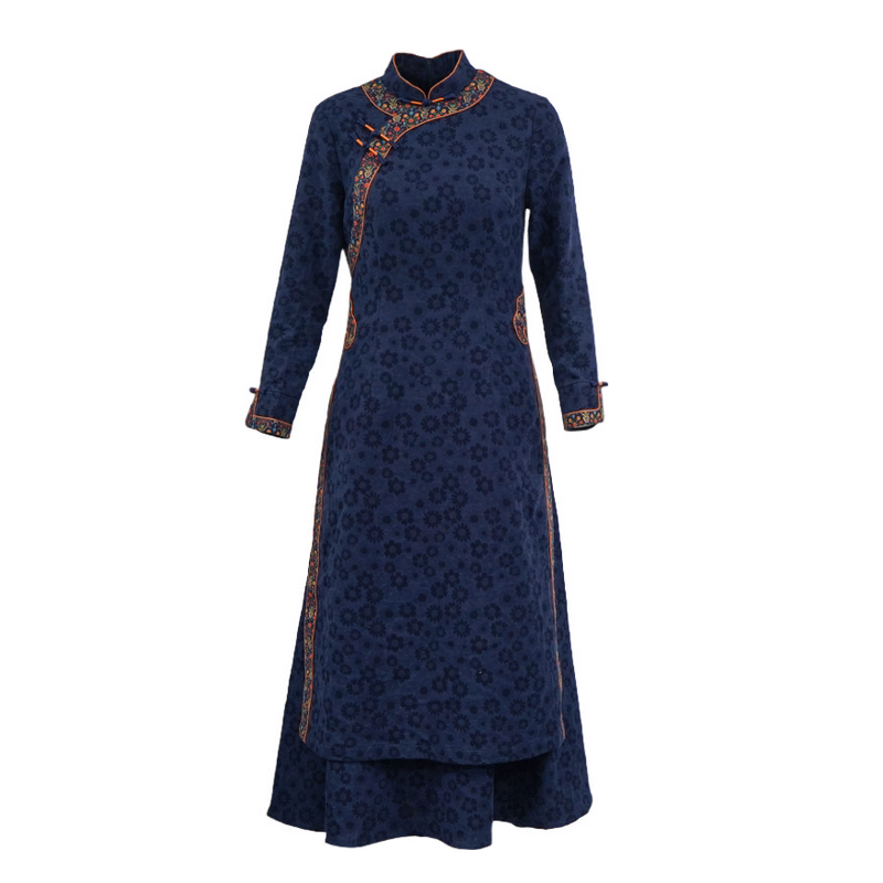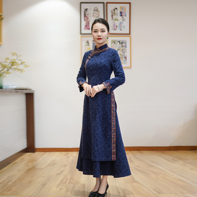 如意风冬季新款中国风收腰显瘦改良旗袍连衣裙气质素雅长裙24R715