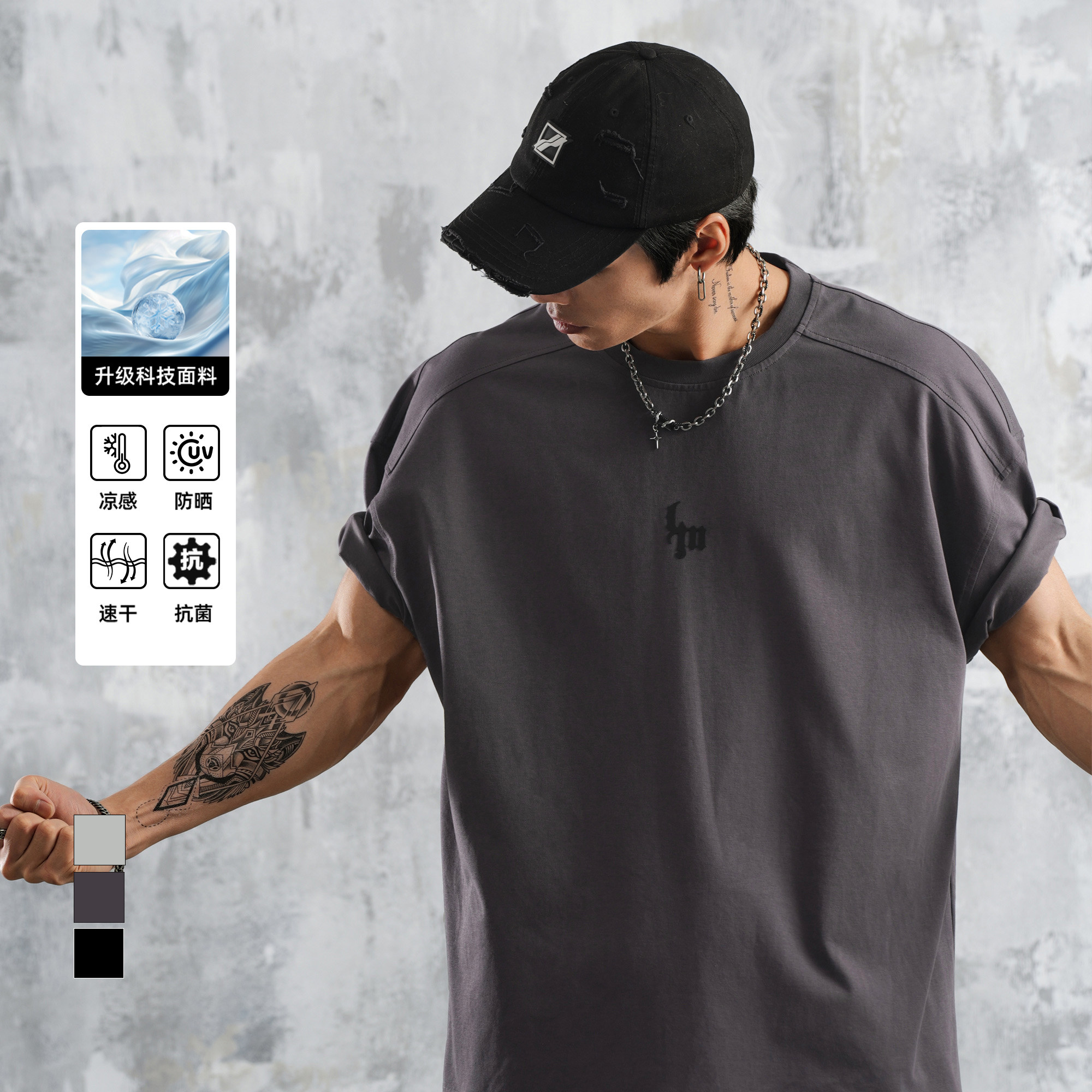 鹿家门速干抑菌防晒凉感短袖T恤男士2026夏季大码美式休闲打底衫