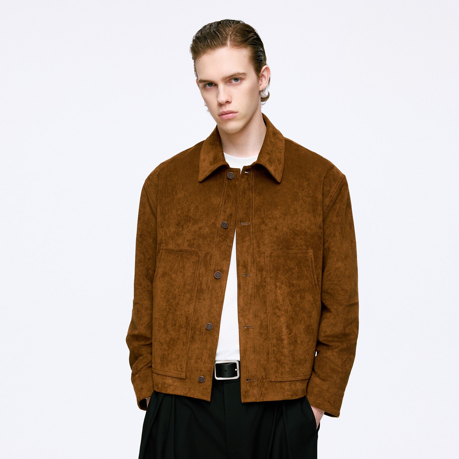 麂皮绒短款夹克复古翻领百搭宽松外套支线Essence by BONELESS