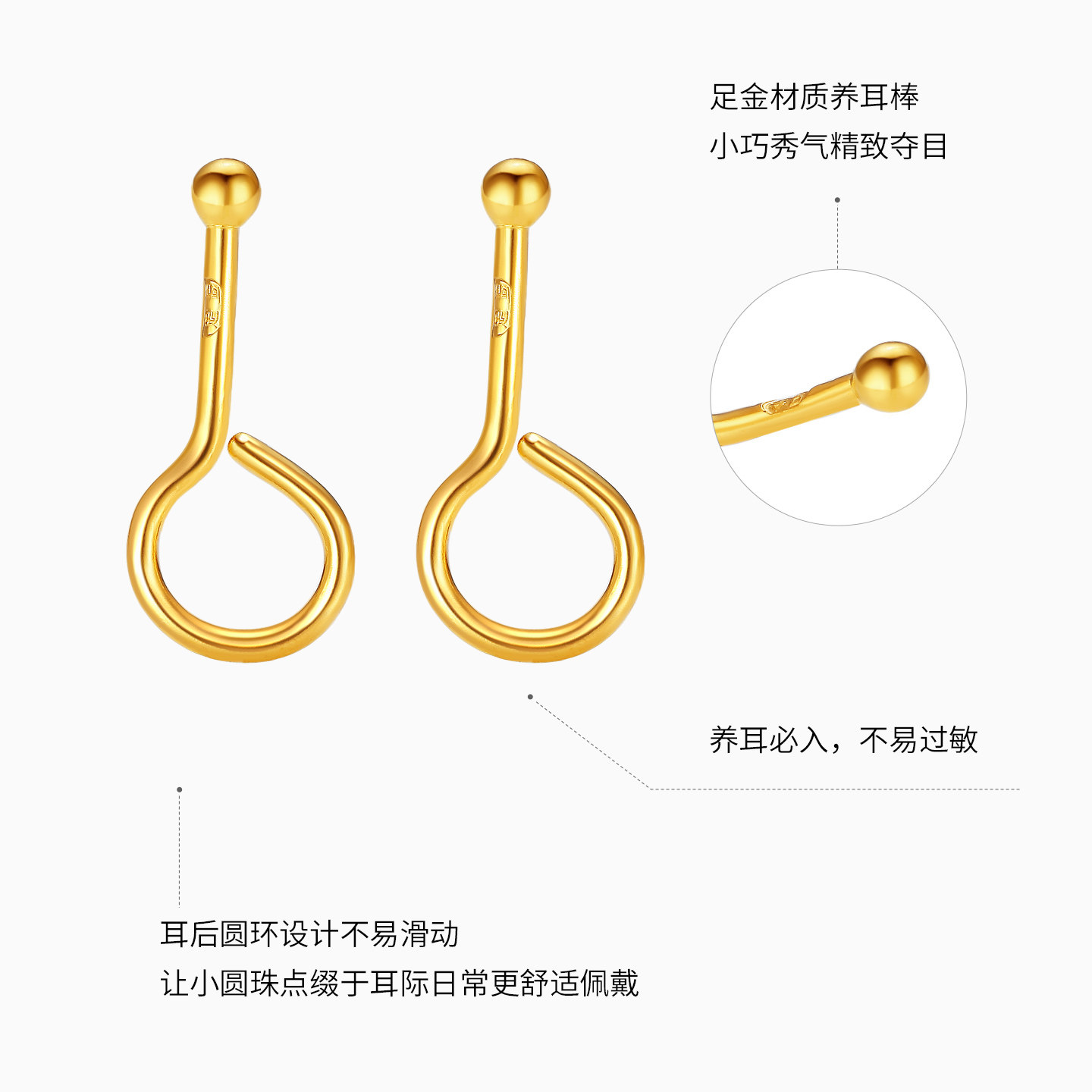 潮宏基珠宝小圆珠黄金耳钉耳坠足金耳勾耳环耳饰经典小豆豆 计价