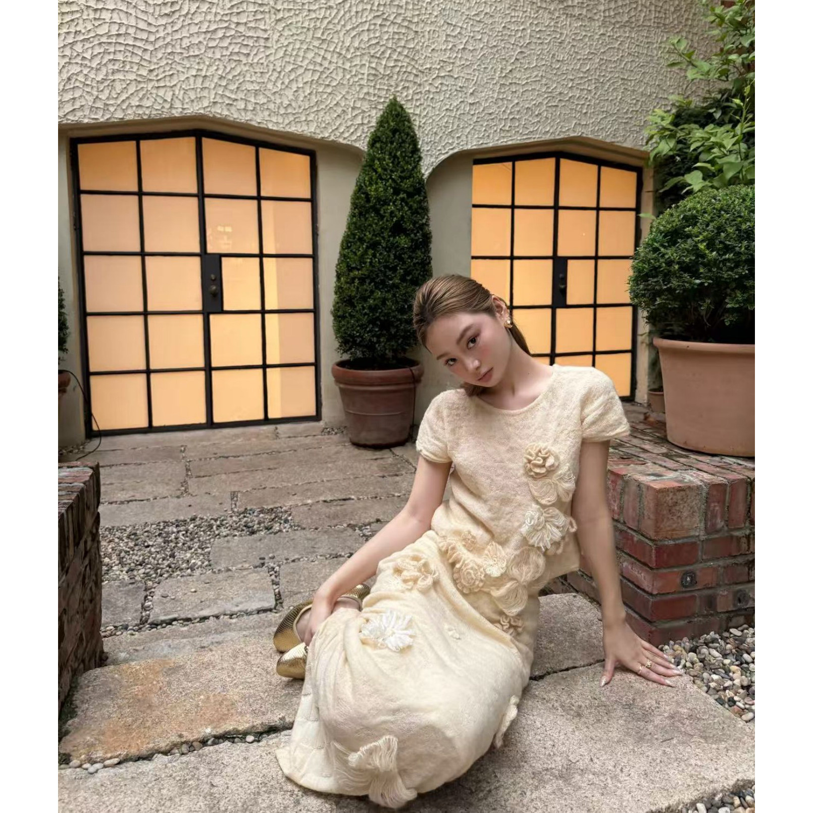 --------------------- Piacevole e FW25 3D立体小玫瑰羊驼毛混纺手工钉花针织短袖套装 【原售价】1780元 【现售价】1566元 【推荐理由】